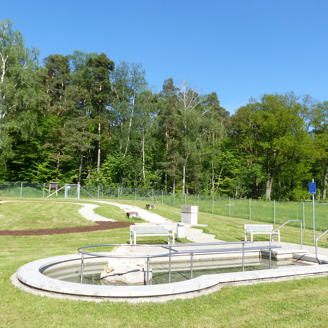 Ob vor oder nach dem Waldspaziergang, ein Zwischenstopp an der Kneipp-Anlage tut gut. Zusätzlich kann man auf dem Barfußpfad verschiedenen Untergründen nachspüren.