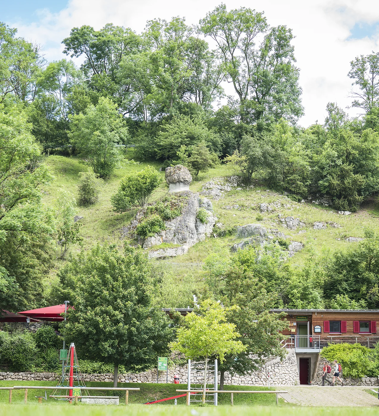 Bootsverleih dirkt am Platz. Vom nahegelegenen Panoramawanderweg können Sie auf die "Bootsrutsche" der Altmühl herunterblicken.