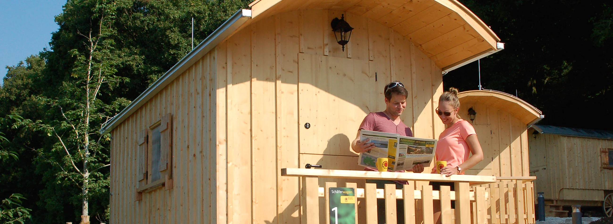 Naturnah übernachten – aber mit Komfort! Dafür steht der Begriff Glamping. Die Campingplätze haben im Naturpark Altmühltal einige besondere Unterkünfte für Zwei oder für die ganze Familie im Angebot. Verwurzelt in der traditionellen Schäferkultur der Region ist zum Beispiel das Schäferwagendorf Hammermühle. Aber auch gemütliche Schlaffässer, Pods, Holzzelte und umfassend ausgestattete Mobilheime gibt es zu mieten. Besonders praktisch für Radurlauber sind die Bike-Lodges.