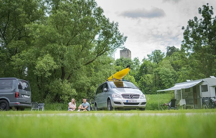 Radfahrer, Motorradfahrer mit dem Zelt im Gepäck genießen den Aufenthalt am Pappenheimer Naturcampingplatz ebenso, wie die Wohnwagen- und Campingbus-Besitzer.
