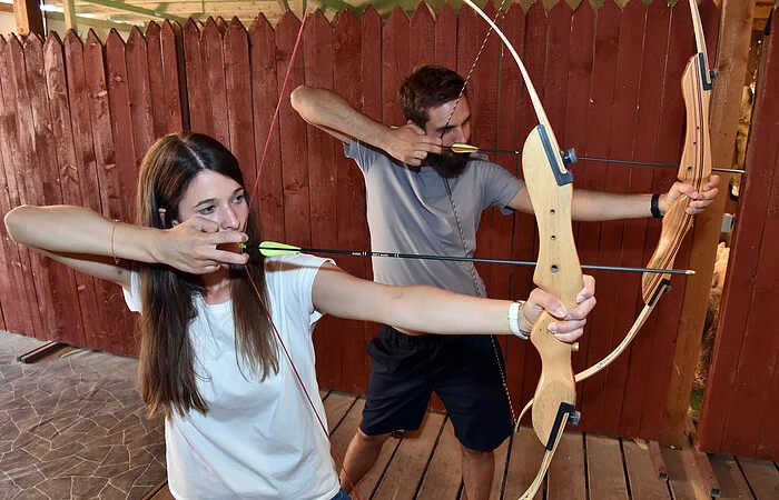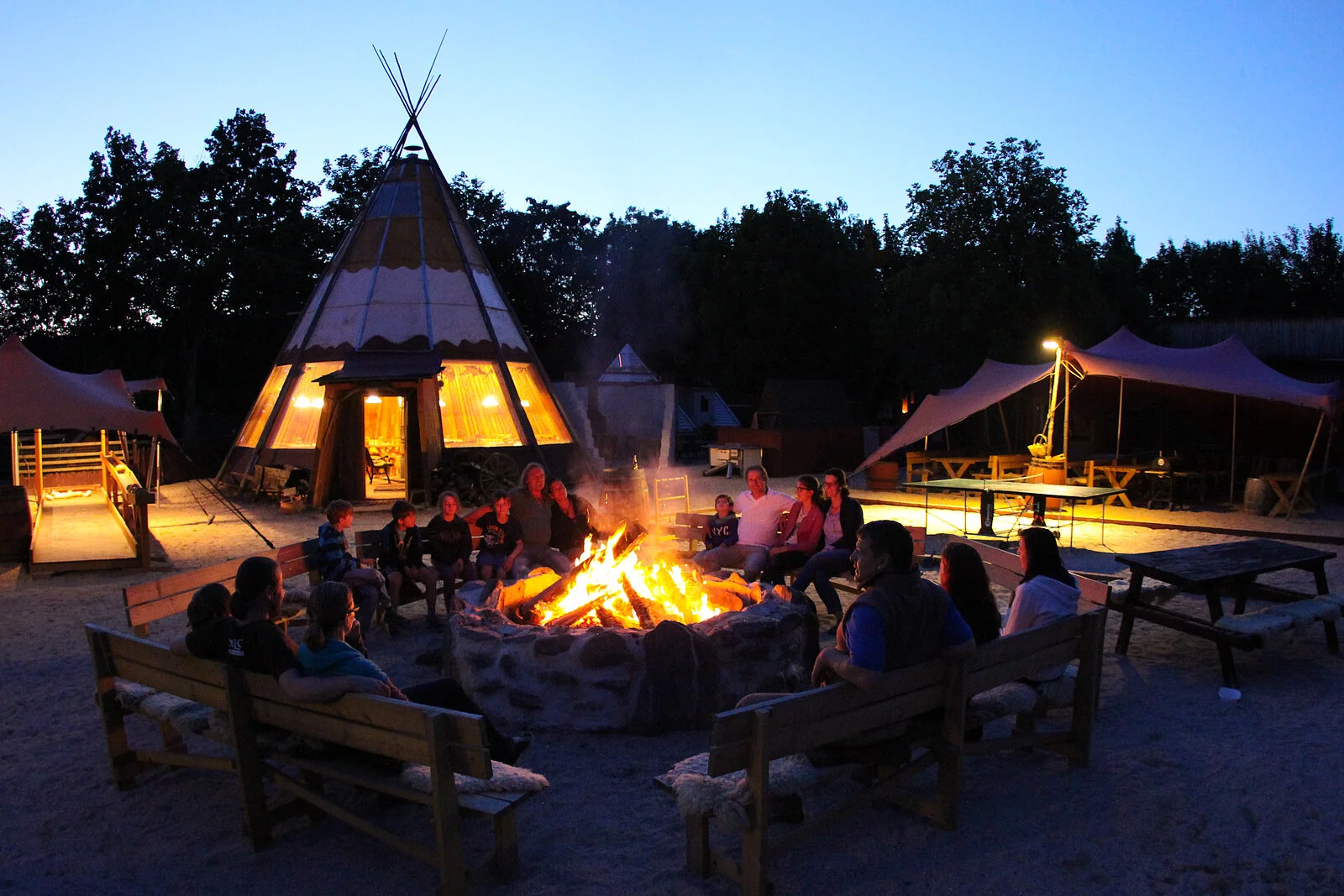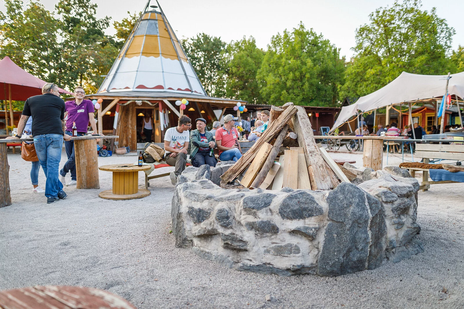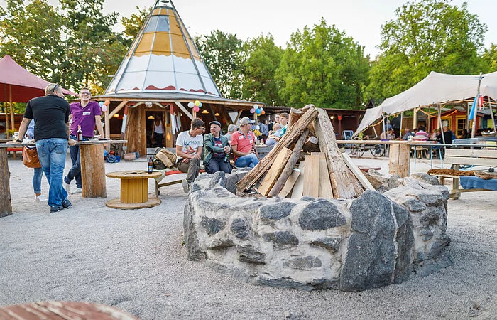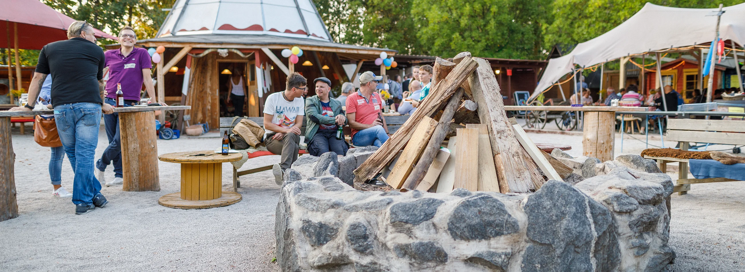 Auf dem ca. 2.400 qm großen Outdoor- und Eventgelände befinden sich Holzzelte zum Übernachten, Bogenschießstand, Pizzaofen, Lagerfeuerstellen, Riesenkicker, Holzkegelbahn, Torwand etc. welche eine gemütliche Atmosphäre erzeugen.