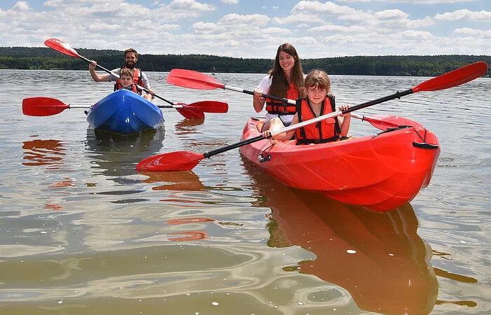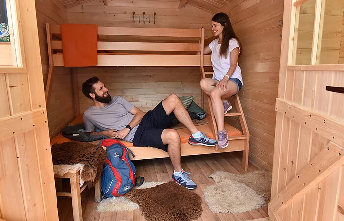 Im SAN-shine-CAMP Brombachsee können die Holzzelte, ausgestattet mit Stockbetten ganzjährig gebucht werden. Max. 40 Personen können im Areal des Camps übernachten - wetterunabhängig!