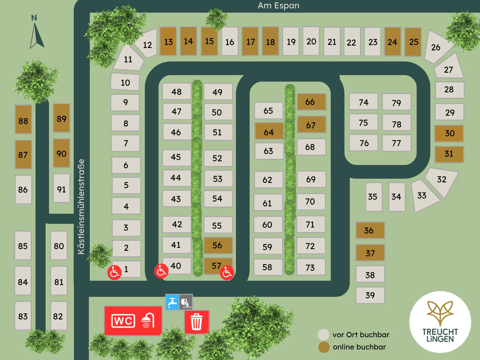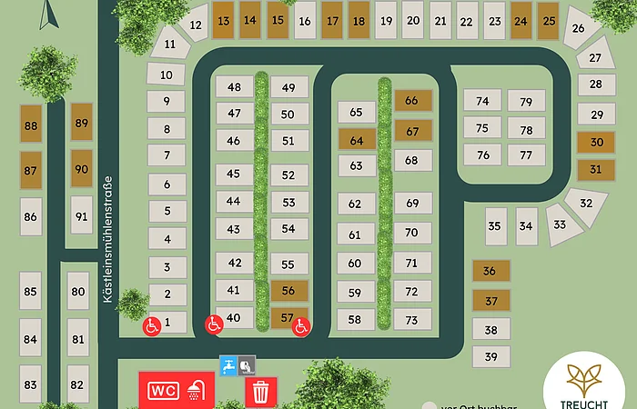 Komfort-Parzellen im Format 7 x 11 Meter für 91 Reisemobile.