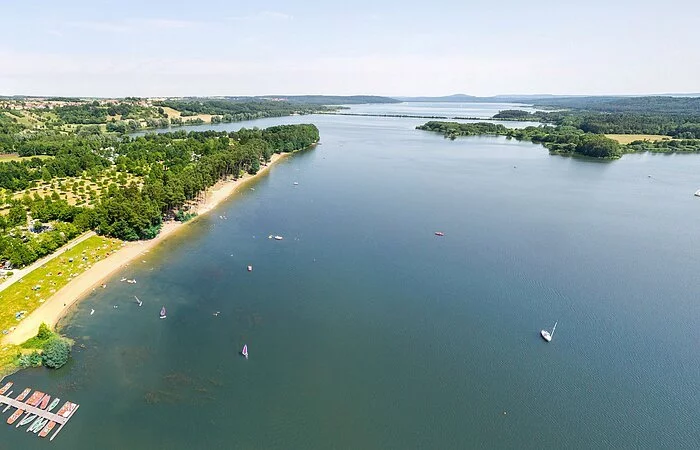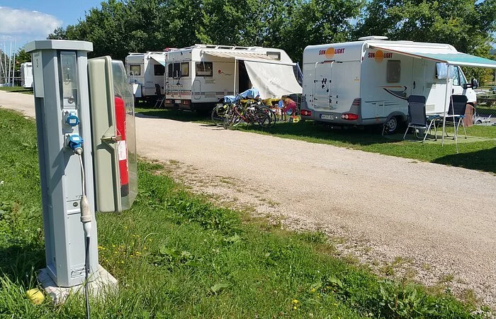 Die Gäste des Wohnmobilstellplatzes schätzen die attraktive Lage direkt am Kleinen Brombachsee inmitten der Erholungsanlage Badehalbinsel Absberg.