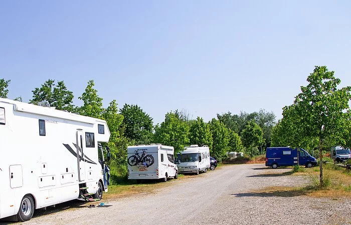 Auf dem Parkplatz an der Woffenbacher Straße (stadtauswärts rechter Hand) finden sich ca. 30 kostenfreie und ausgewiesene Stellplätze (geschottert).
