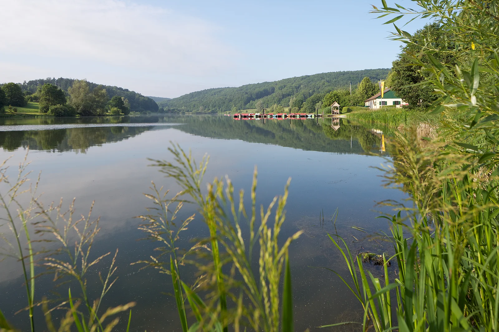 Die Freizeitanlage Hahnenkammsee mit Sanitäranlagen, Badestrand, Spielplatz, Beachvolleyballfeld, Tischtennisplatte, Kneipptretbecken, Strandhaus mit See-Terrasse, Bootsvermietung und Grillplatz erreichen Sie in wenigen Gehminuten.