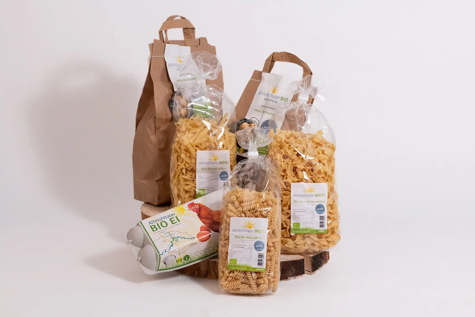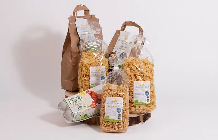 Bio-Dinkelnudeln und Bio-Hartweizennudeln in verschiedensten Formen hergestellt mit den eigenen Eiern.
