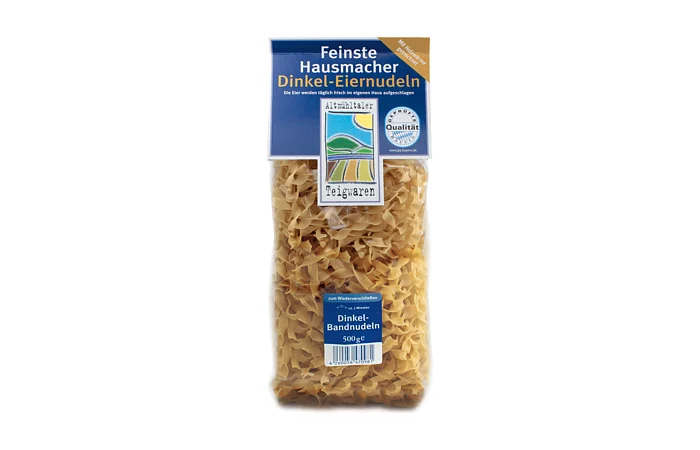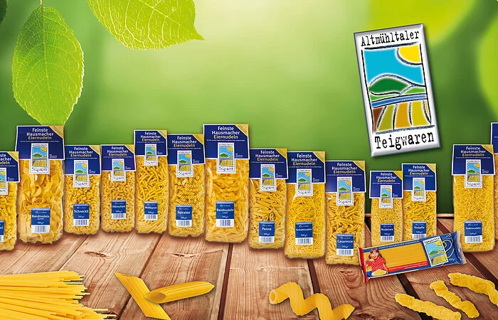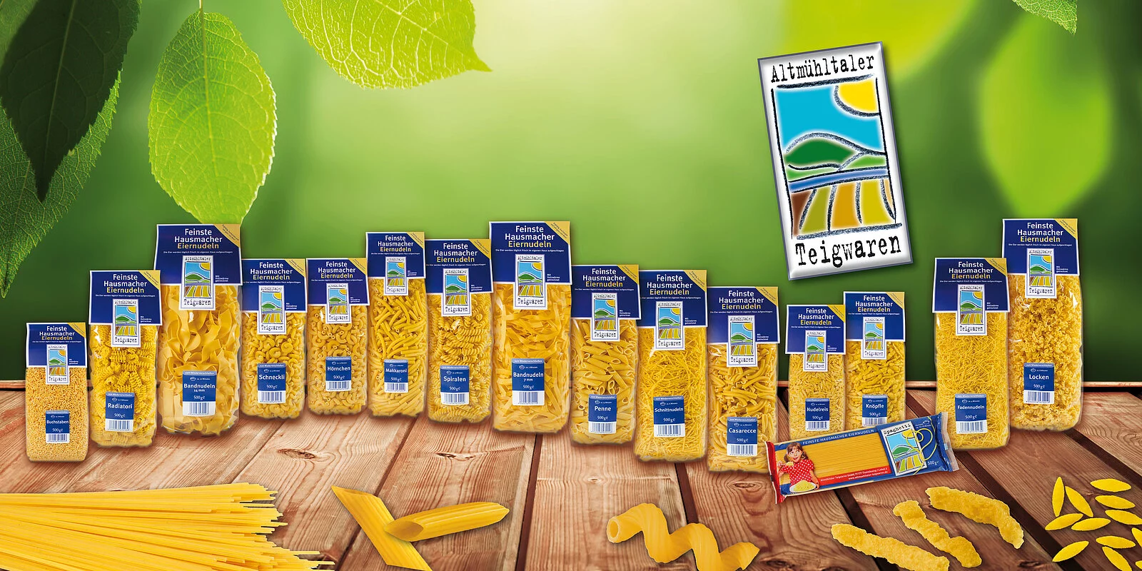 Der Geschmack und die hervorragenden Kocheigenschaften sind das Besondere und Unverkennbare unserer Altmühltaler Teigwaren. So sind sie nicht nur ergiebig und kochstabil, sondern auch extrem bissfest. Verkauf ab Hof oder in vielen gut sortierten Märkten der REWE, der EDEKA Nord- und Südbayern, BayWA- und Raiffeisenwarenmärkten, Metzgereien, Mühlenläden und Hofläden.