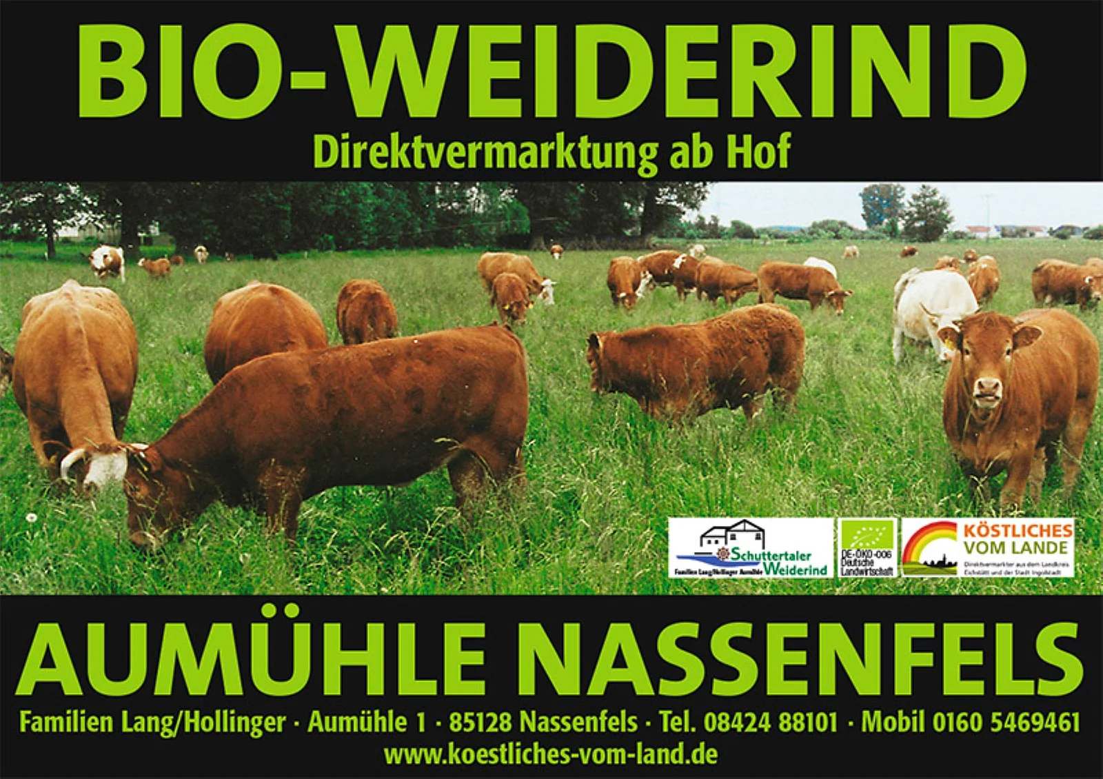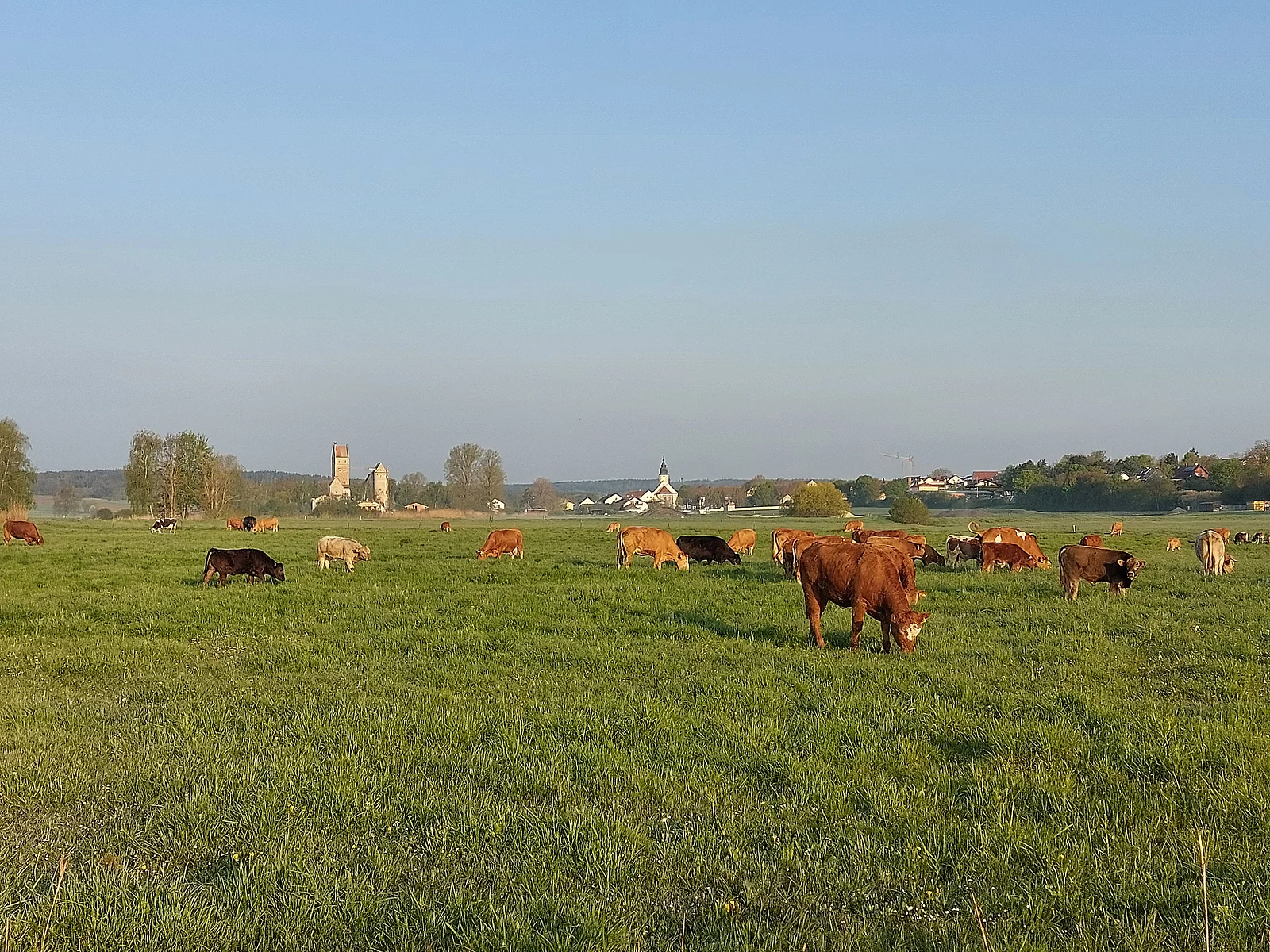- Rindfleisch: Die Tiere unserer Limousin- und Fleckviehherde genießen den Sommer auf unseren gut geführten extensiv bewirtschafteten Weiden. Dort finden sie eine große Vielfalt an Kleearten, Gräsern und Kräutern. Dieses natürliche, abwechslungsreiche Futter ergibt ein geschmackvolles Rindfleisch.