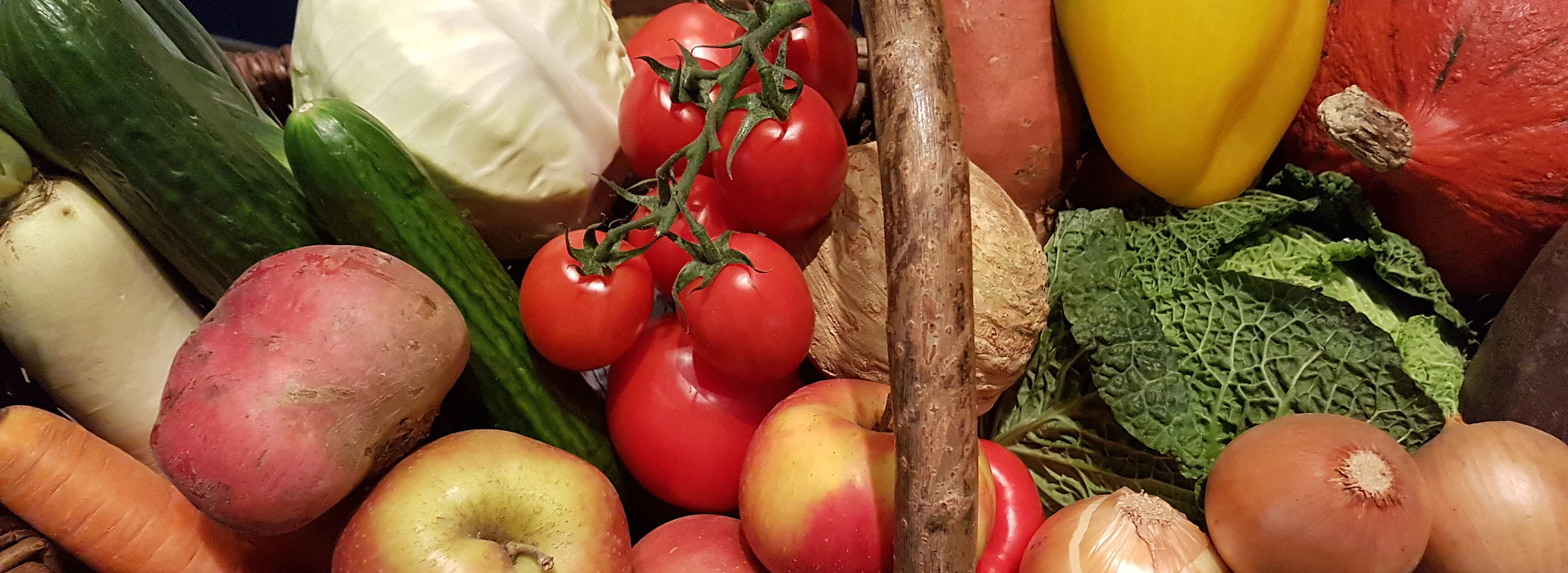 Saisonbedingtes Gemüse, Obst und Getreide ernten wir von unseren umliegenden Feldern und Obstbäumen. Insgesamt bewirtschaften wir eine Fläche von 30 ha, davon sind 27 ha Ackerbau, 1,5 ha Grünland und 1,5 Gemüseanbau.