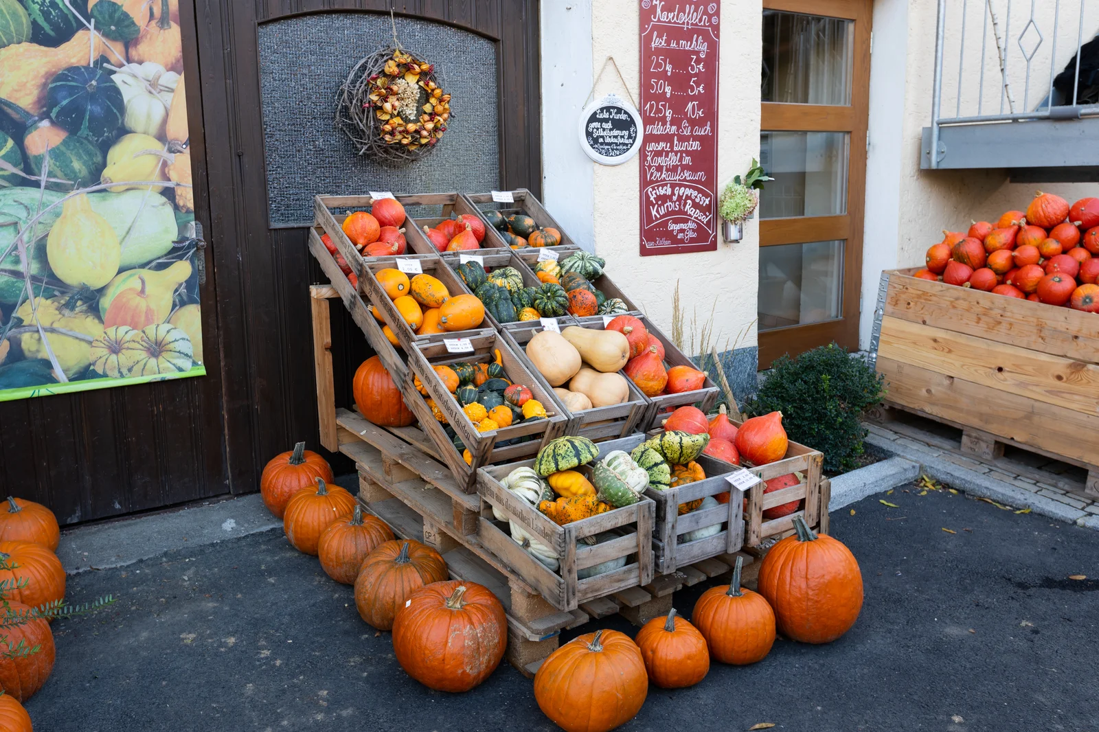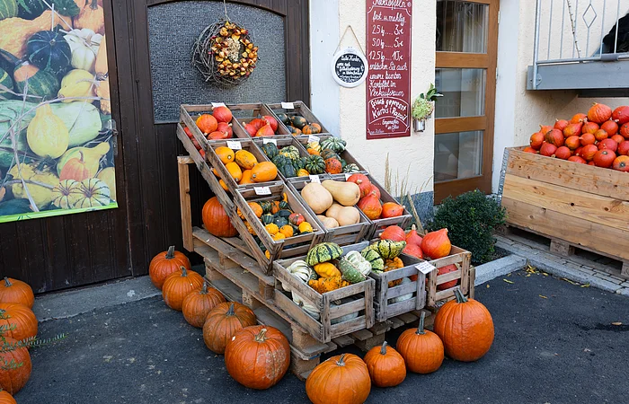 Zur Saison gibt es verschiedene Zier- und Speisekürbisse (Hokkaido, Halloween, Gorgonzola, Spaghetti, Butternuss, etc.), Kürbiskernöl, sowie historische Kartoffelsorten (blaue Trüffelkartoffel, Bamberger Hörnchen, etc.).