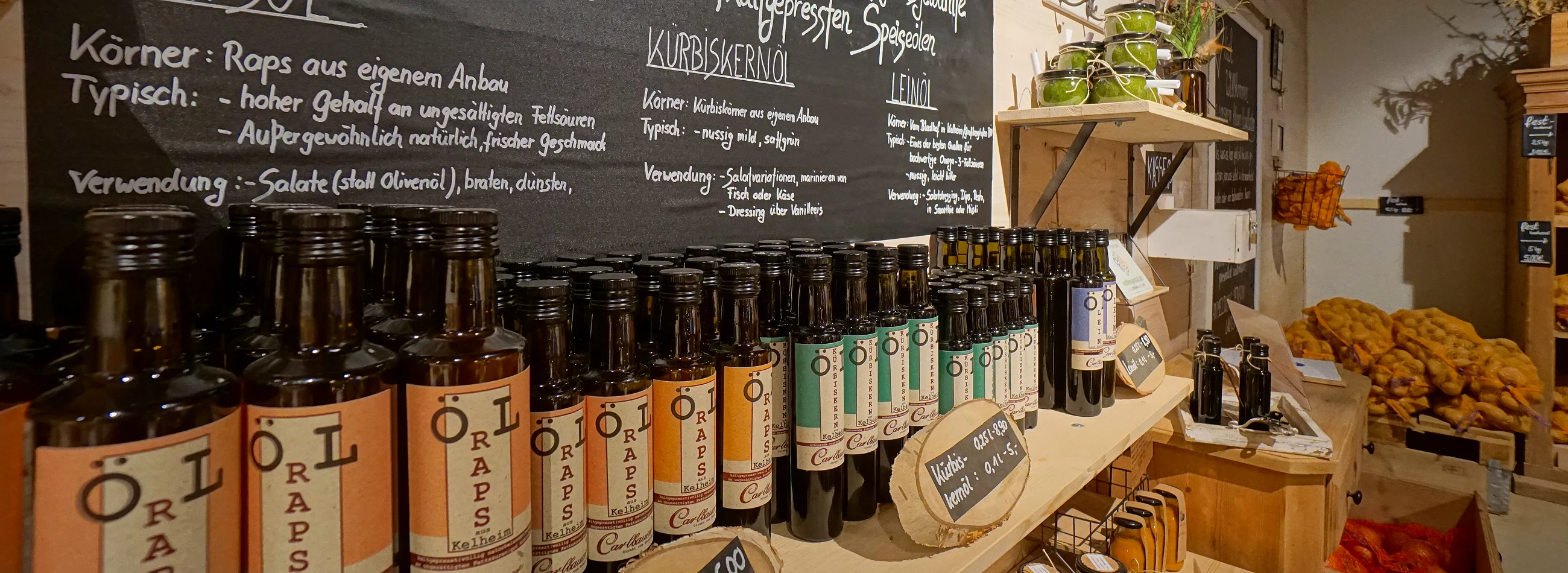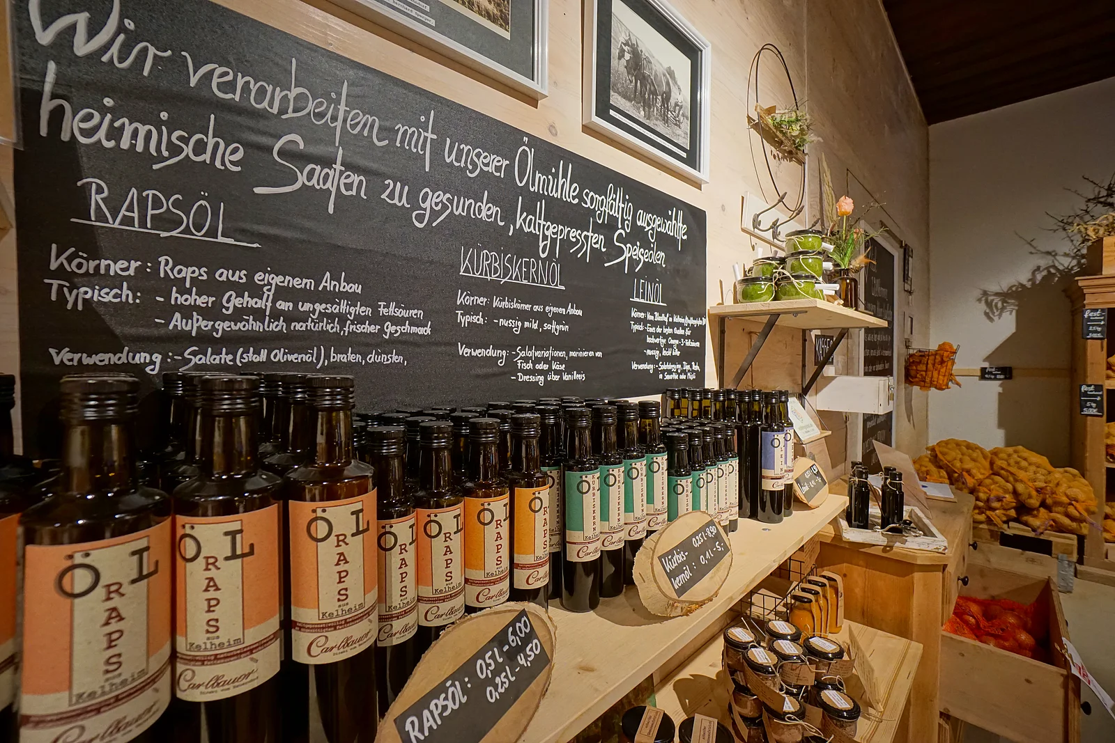 In unserer hofeigenen Manufaktur verarbeiten wir, was wir selbst anbauen, pflegen und ernten. Kartoffeln, Kürbisse, kaltgepresste native Speiseöle sowie Marmeladen, Chutneys und weitere Köstlichkeiten entstehen direkt am Hof. Ergänzt wird das Sortiment durch ausgewählte Produkte befreundeter Landwirte aus der Umgebung.