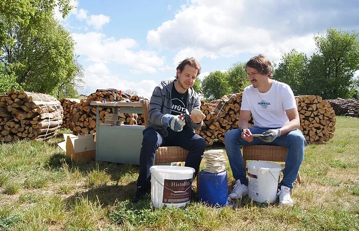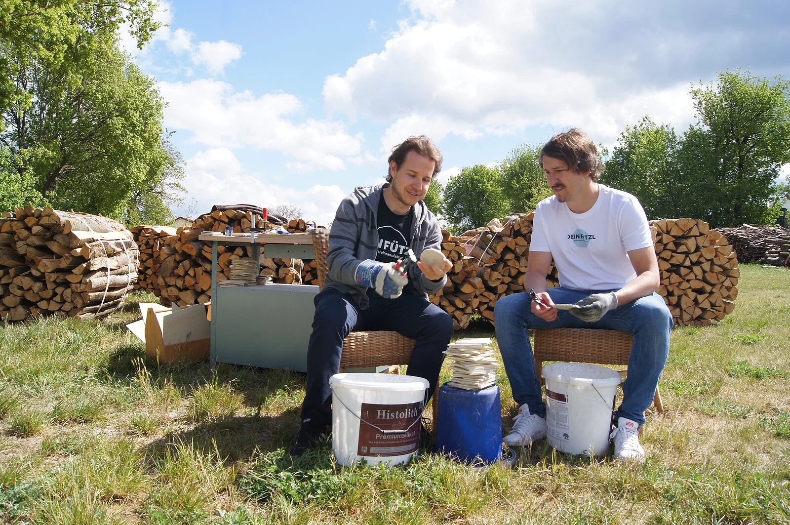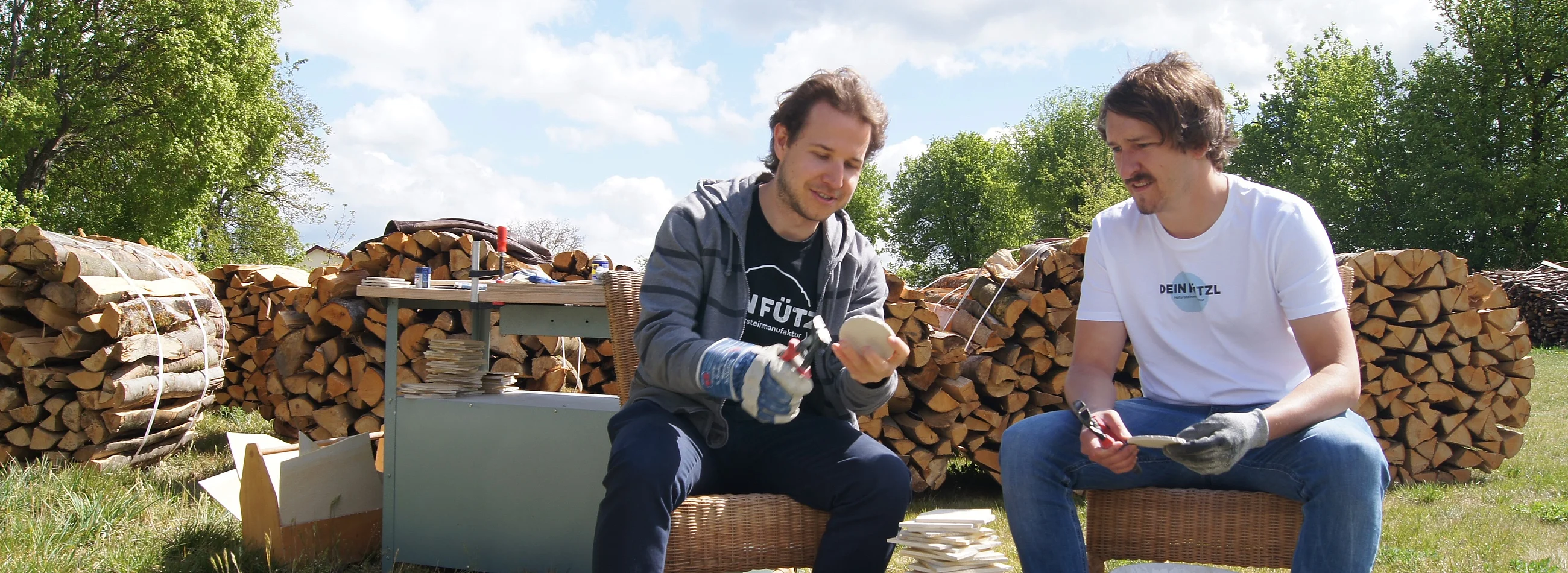 Nach den ersten Prototypen, fanden wir recht schnell eine geeignete Methode, die Steine zu bearbeiten. Dabei finden vom Abbau des Rohmaterials im Steinbruch bis zum fertigen Produkt, alle Arbeitsschritte regional und fast ausschließlich in Handarbeit statt.
