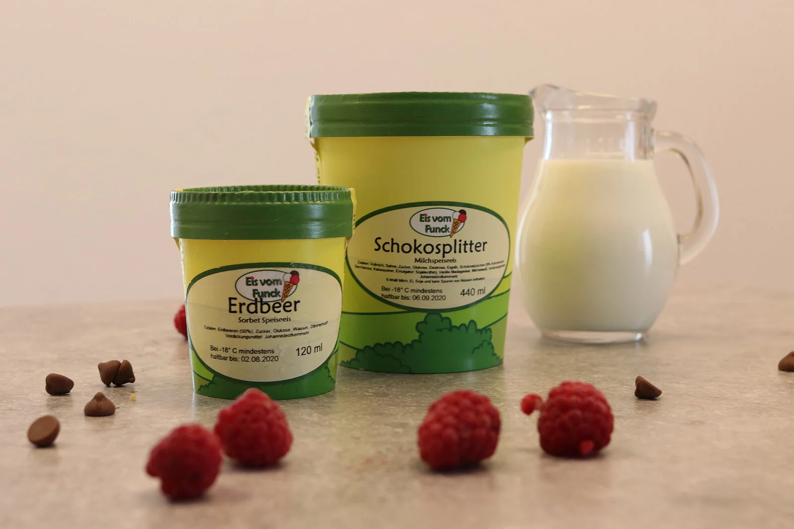 Aus unseren eigenen Früchten und Bio-Milch aus der Region stellen wir das Eis auf unserm Hof in Dörndorf selbst her. Die frischen Früchte und der Verzicht auf Konservierungsstoffe geben dem Eis seinen besonderen Geschmack.