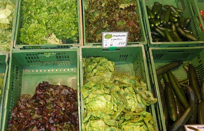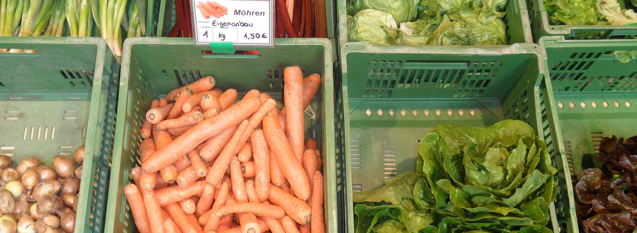 Wir bieten Ihnen frisches Obst der Saison, Gemüse, Eier von unseren Hühnern und viele weitere Qualitätsprodukte aus eigener Erzeugung. In unserem Gewächshaus werden ausschließlich Nützlinge zur Schädlingsbekämpfung eingesetzt. Ergänzt wird unser Angebot durch die Erzeugnisse anderer Direktvermarkter - Käse aus dem Allgäu, Weine direkt vom Winzer, Äpfel und Birnen aus der Region.