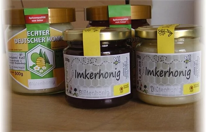 Wir verkaufen Blüten- und Waldhonig in 500g und 250g Gläsern bei uns an der Haustüre, im "Käse und Feines"-Feinkostladen, Johannesgasse 7, 93339 Riedenburg und bei "Rewe", Gewerbepark Riedenburg.