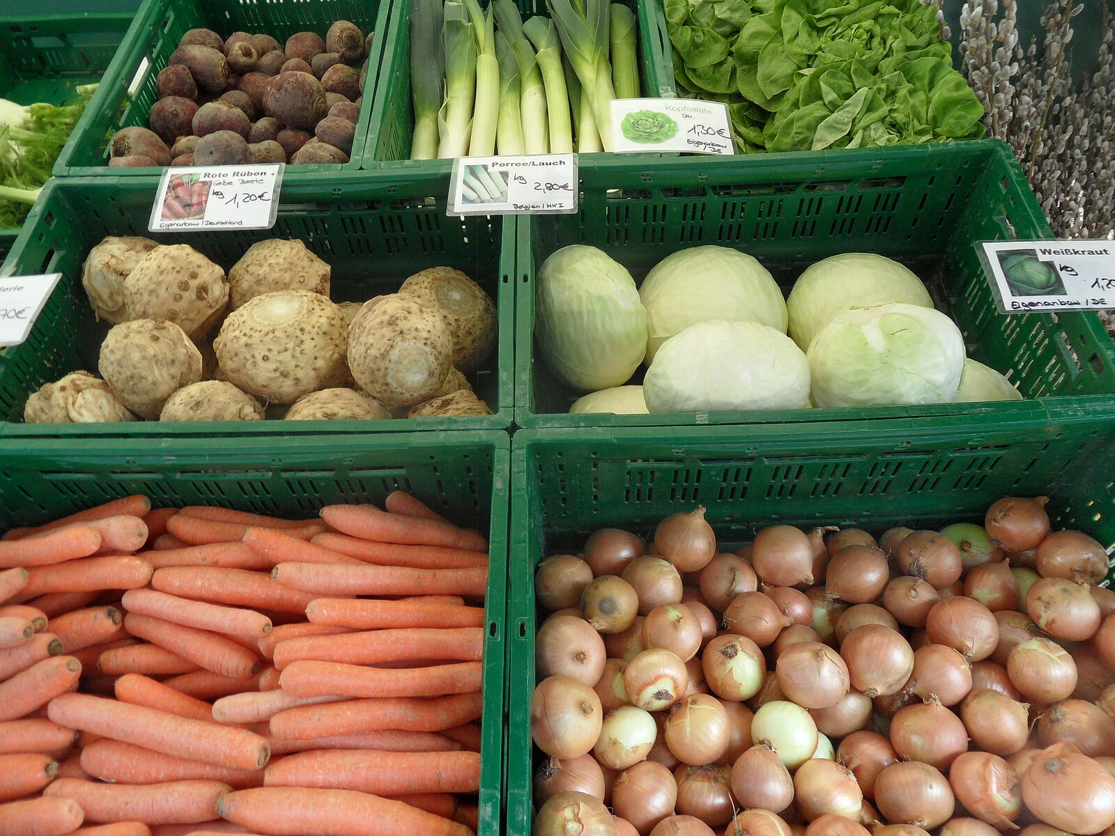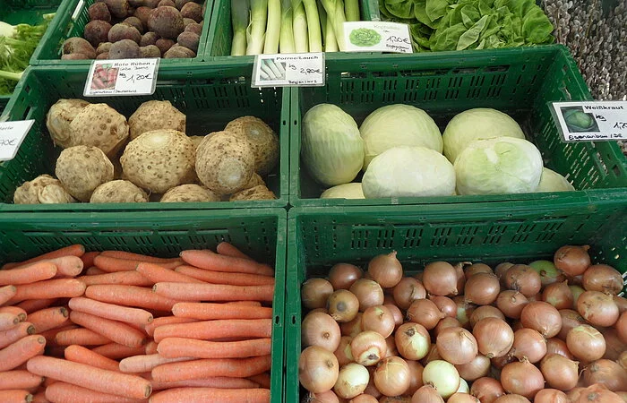 Unser Sortiment umfasst Frühkartoffeln sowie verschiedene Kochtypen der späteren Ernte, die Sie ganzjährig bei uns im Hofladen erwerben können. Dazu verkaufen wir Saisongemüse frisch vom Feld aus eigenem Anbau, Eier von glücklichen Hühnern und Frischmilch.
