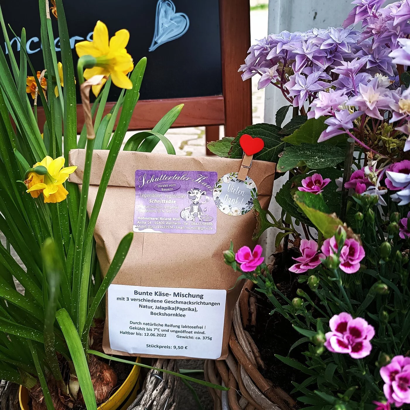 Neben der Milch bieten wir seit Mai 2021 auch Schnittkäse in vielen verschiedenen Geschmackrichtungen, natürlich mit pasteurisierter Milch, von unseren Kühen an.