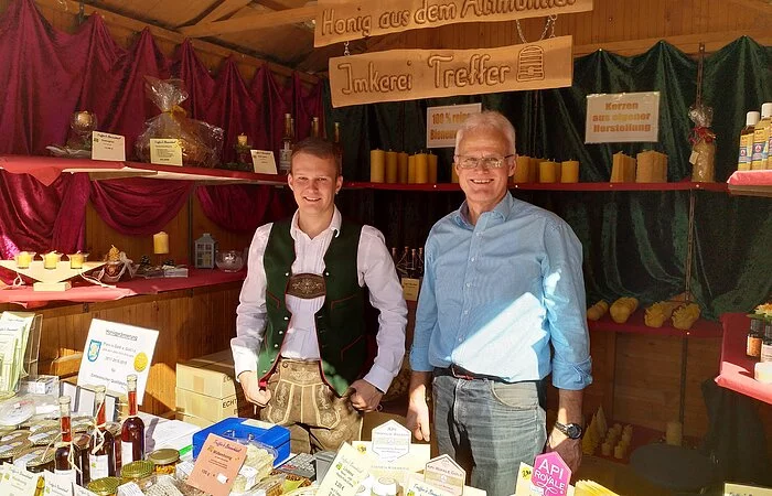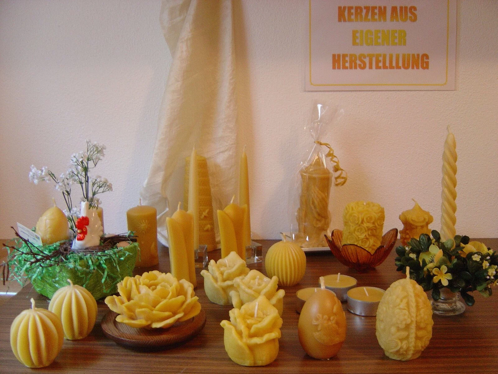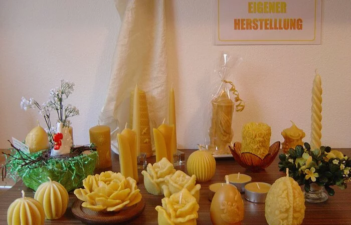 Außerdem bieten wir Bienenwachskerzen, verschiedene Liköre, Pflegeprodukte und Süßes mit Honig aus eigener Herstellung.