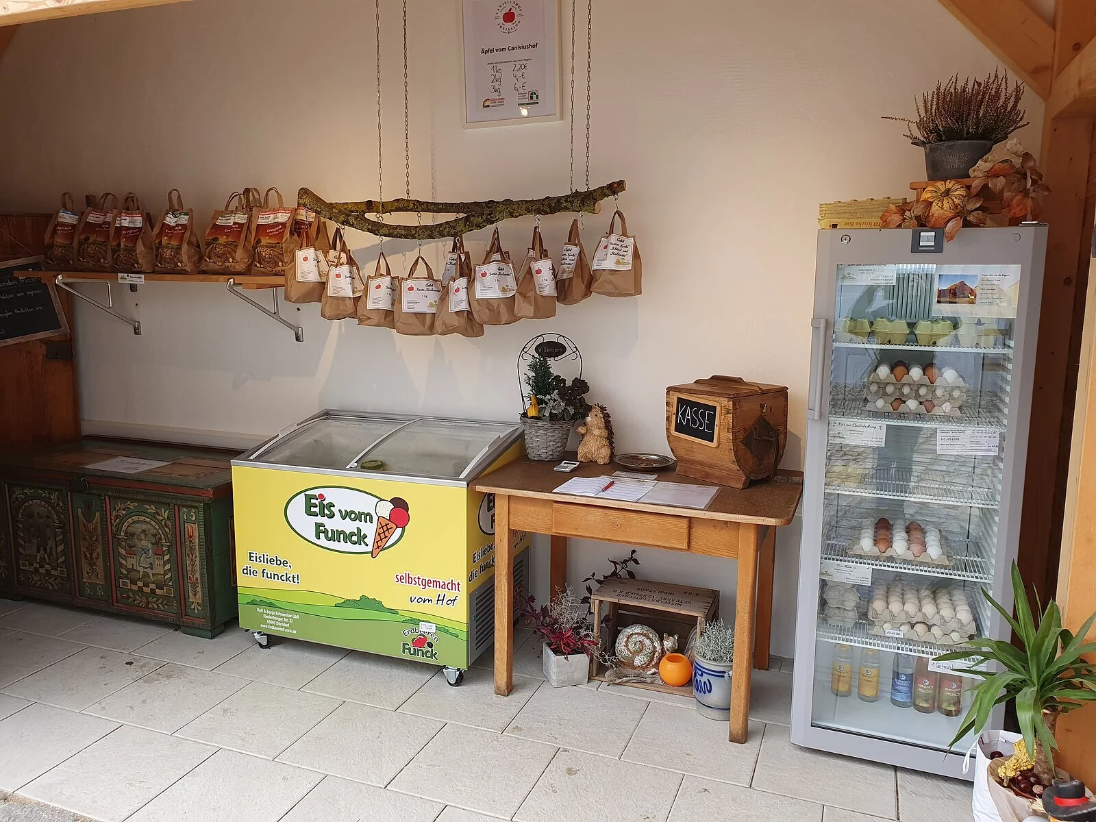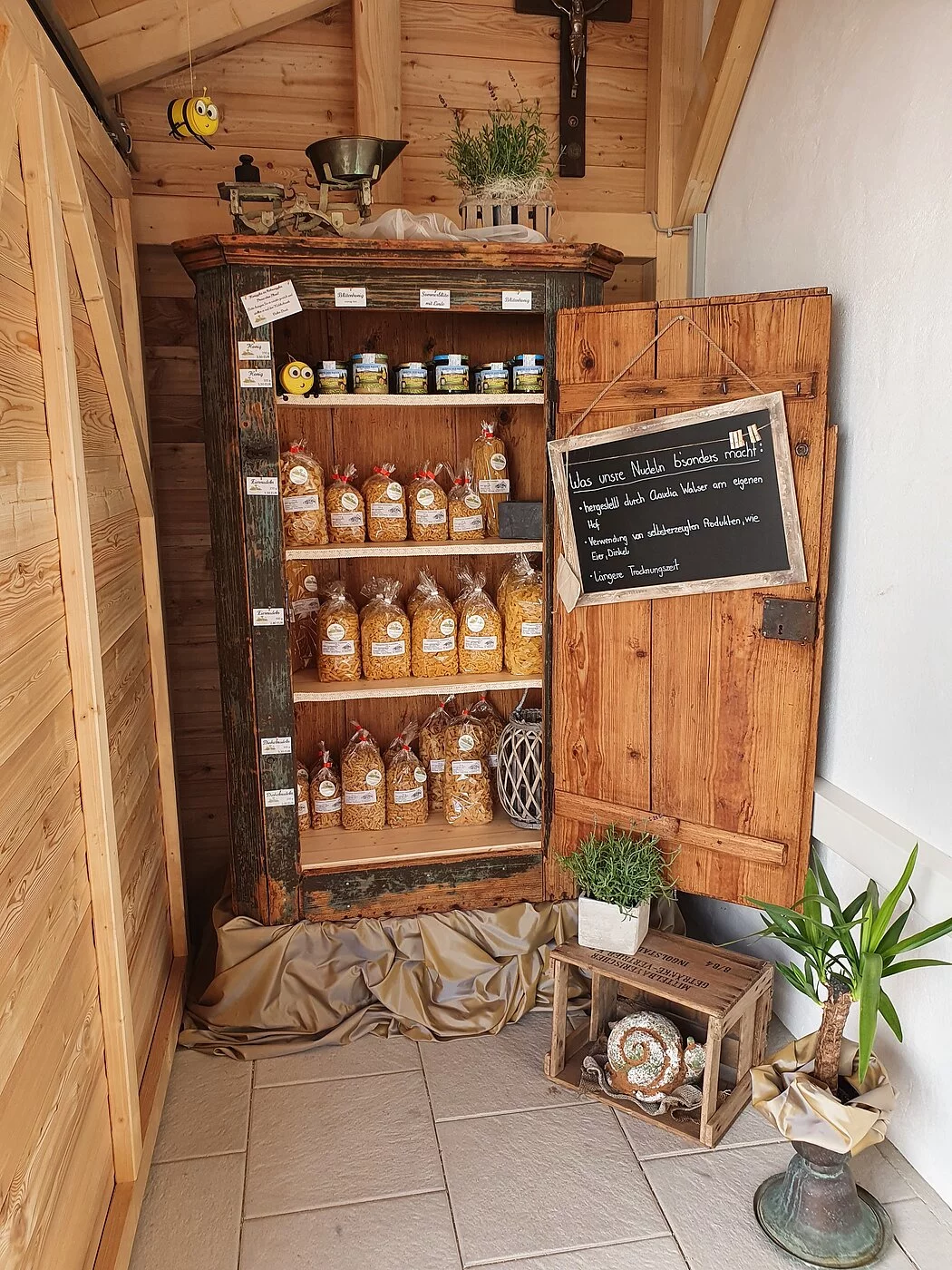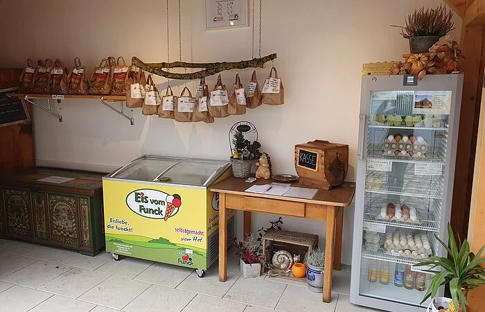 Neben unseren Kartoffeln und Knödeln finden Sie bei uns weitere verschiedene Produkte von anderen Direktvermarktern unserer Region, wie Äpfel, Apfelsaft, Eier, Honig, Eis, Nudeln und Zwiebeln.