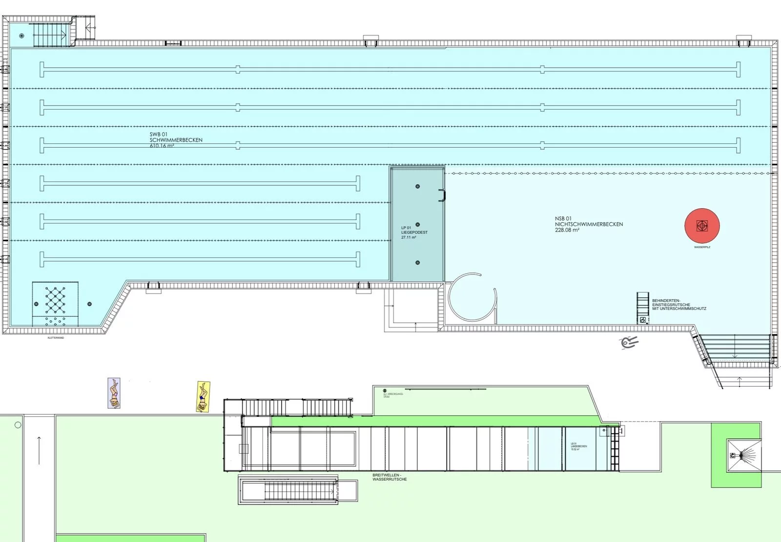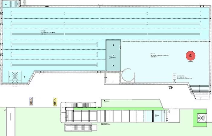 Für sportbegeisterte Schwimmerinnen und Schwimmer stehen drei vollwertige 50-Meter-Bahnen sowie drei 25-Meter-Bahnen bereit.