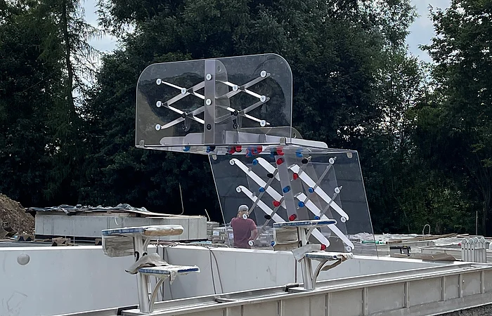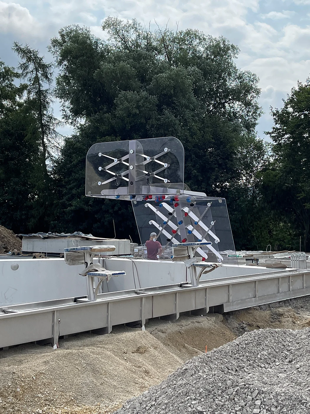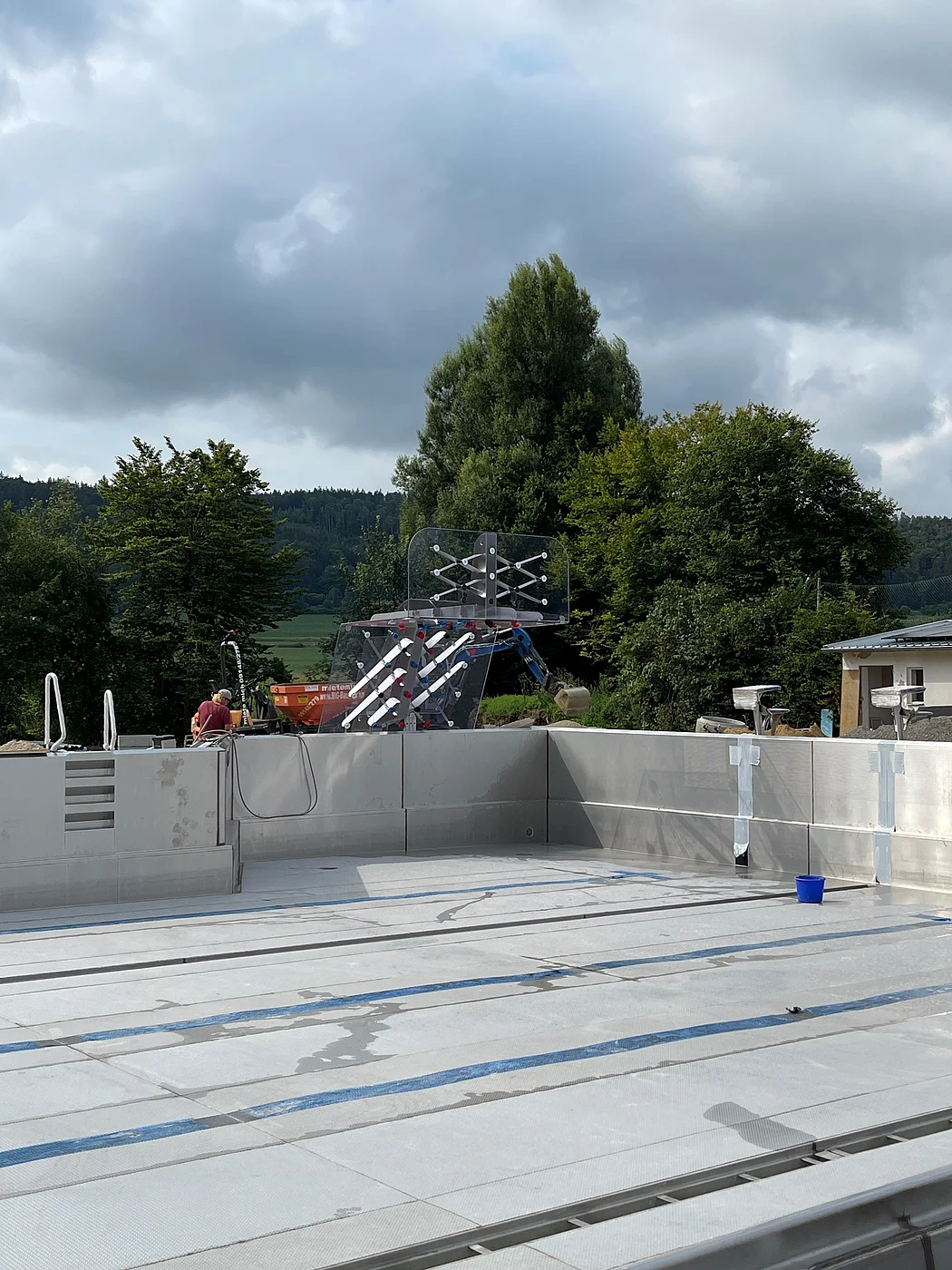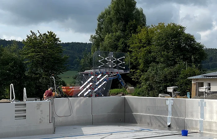 Unser neues Edelstahlbecken bietet zahlreiche Highlights: eine Kletterwand direkt am Wasser, einen Wasserpilz, Massagedüsen und einen überfluteten Sonnensteg zum Entspannen.