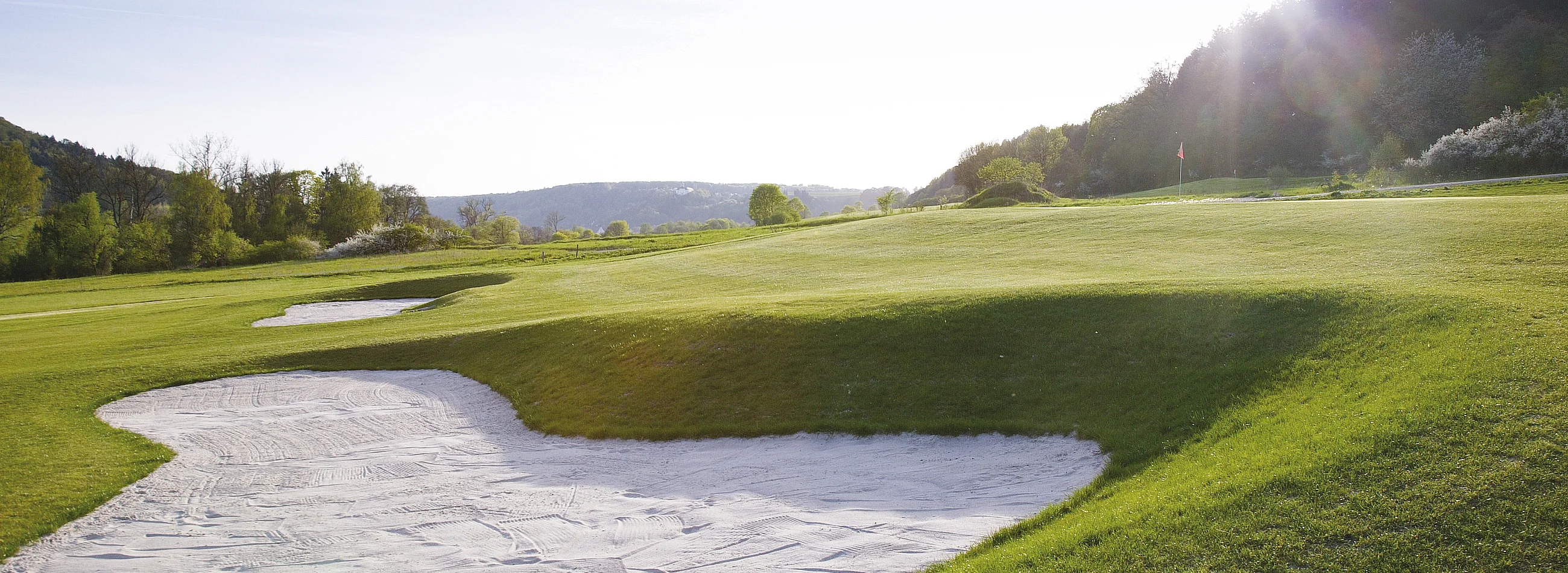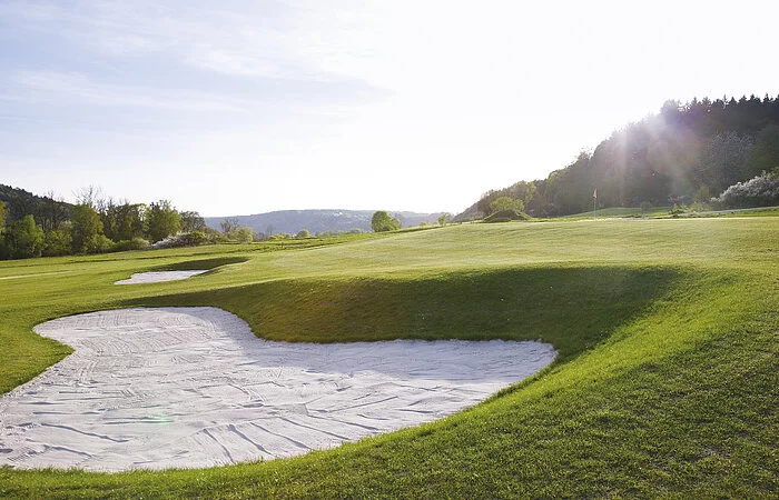 Naturbelassene Fairways, abwechslungsreiche, leicht hügelige Spielbahnen sind für Golfer in jeder Spielstärke interessant. Sportlich anspruchsvolles Spiel oder rundum entspannendes Golferlebnis – auf dieser Anlage stehen Ihnen alle Möglichkeiten offen. Unser Signature Hole, die Bahn 9, Par 4, ist mir ihrem erhöhten Abschlag und nicht einsehbarem Inselgrün, eine besondere Herausforderung für jeden Golfer.