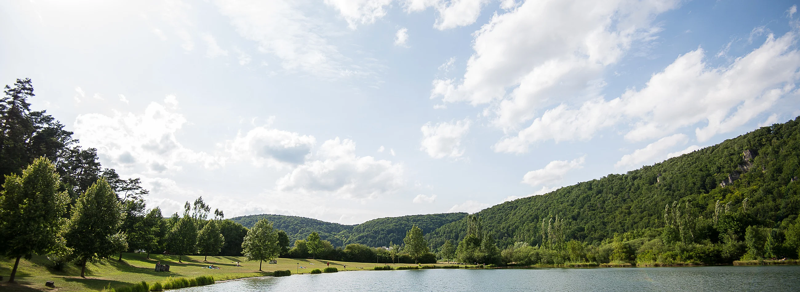 Herrliche Liegewiesen laden zum Verweilen ein. Der Badesee wird während der Saison an den Wochenenden, von der Wasserwacht betreut.