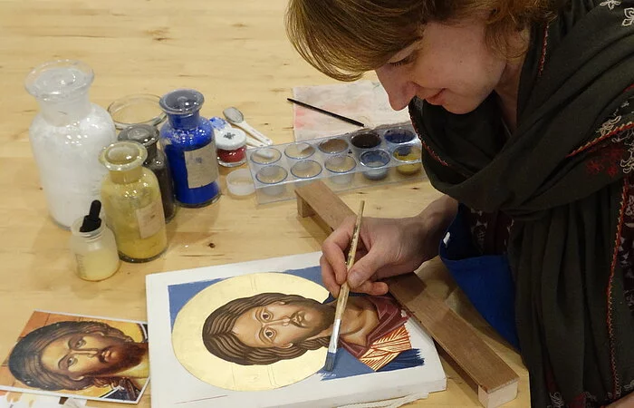 gefertigt werden kann. Die Gestaltung von Ikonen, die nach historischen Vorbildern geschrieben werden, ist ein Bereich, der in der Arbeit von Adelheid Graf immer mehr Raum einnimmt.