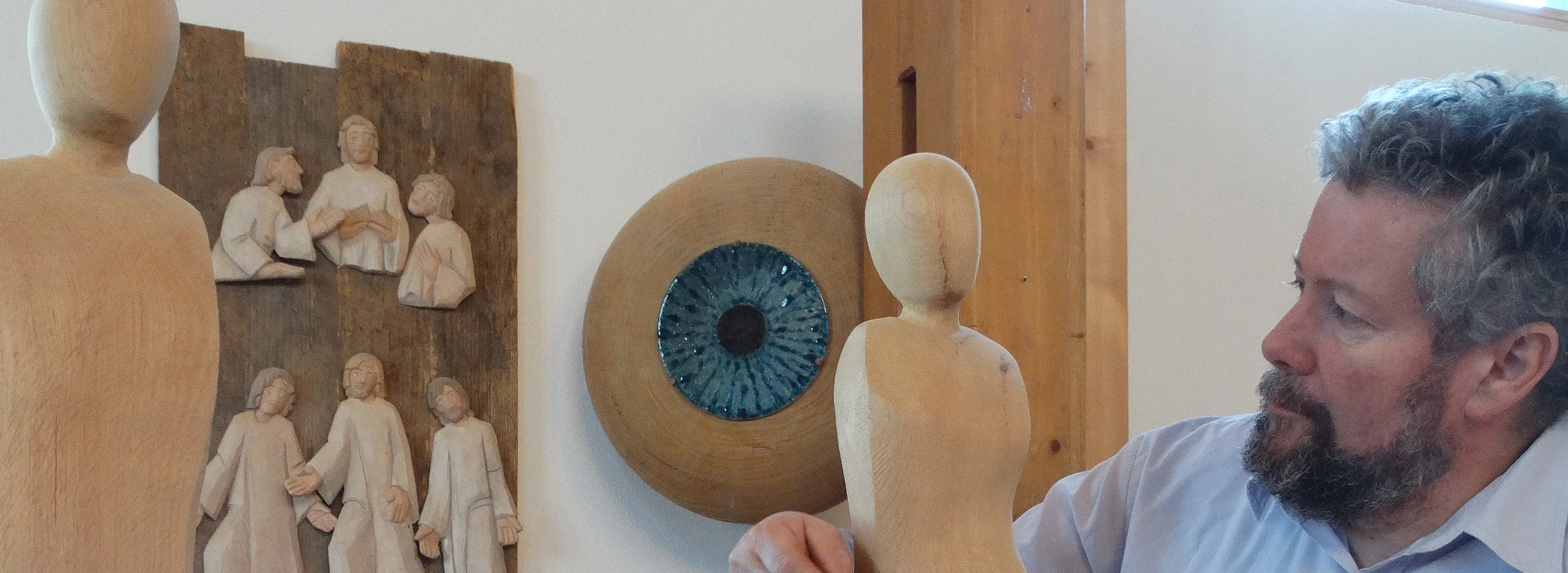 und originalgetreue Kopien nach historischer Vorlage. Im Ausstellungsbereich finden Sie moderne Objekte, welche durch die Kombination von verschiedenen Materialien wie Holz/Glas, Holz/Filz oder Stein/Bronze eine besondere Spannung erzielen. Neben der sakralen Kunst