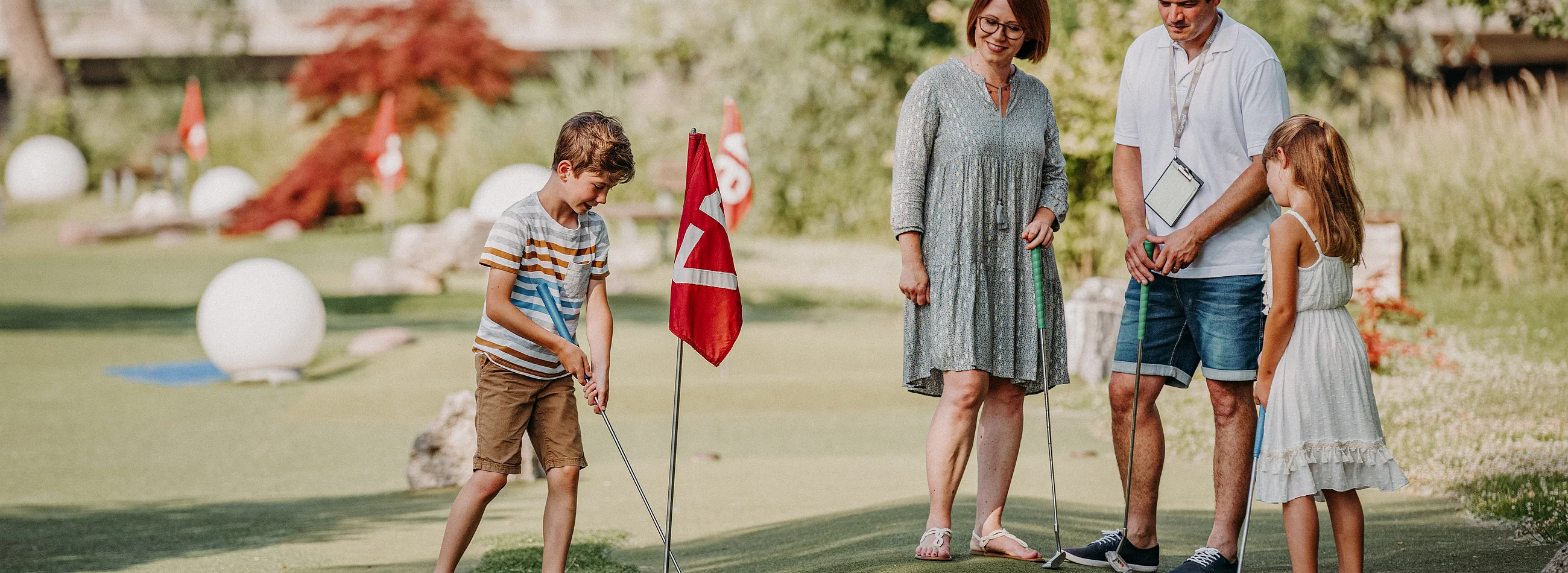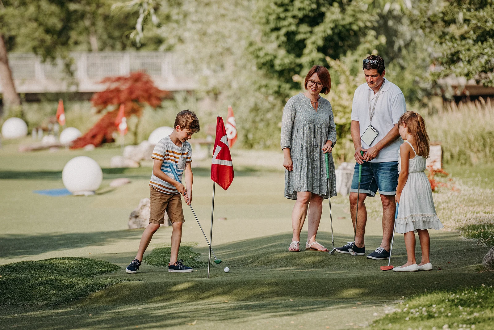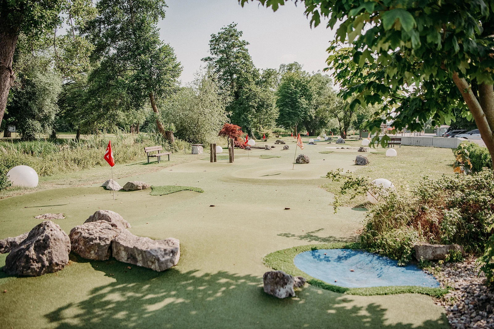 Für Golfer gibt es ein original Putting-Green mit 6 Löchern und Bunker. Das Spielgolf bietet Putten in seiner schönsten Form für Kenner und Neulinge, Könner und Anfänger, Jung und Alt.