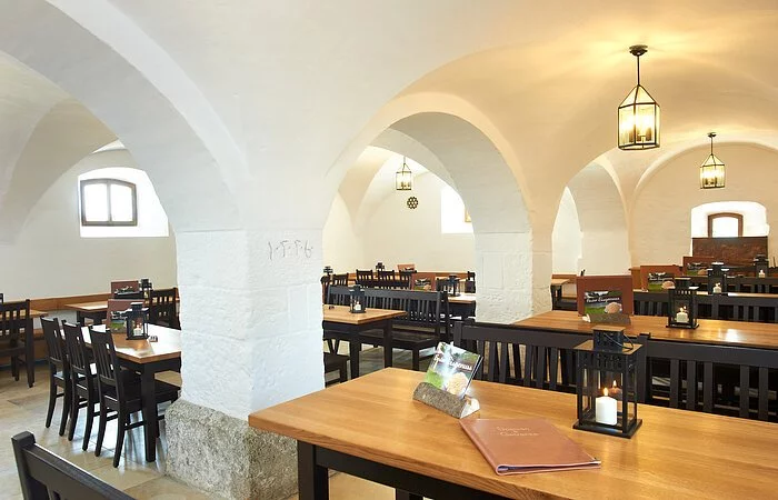 Stufenloser Zugang zum Gebäude, über fein geschotterten Weg zum Burggelände