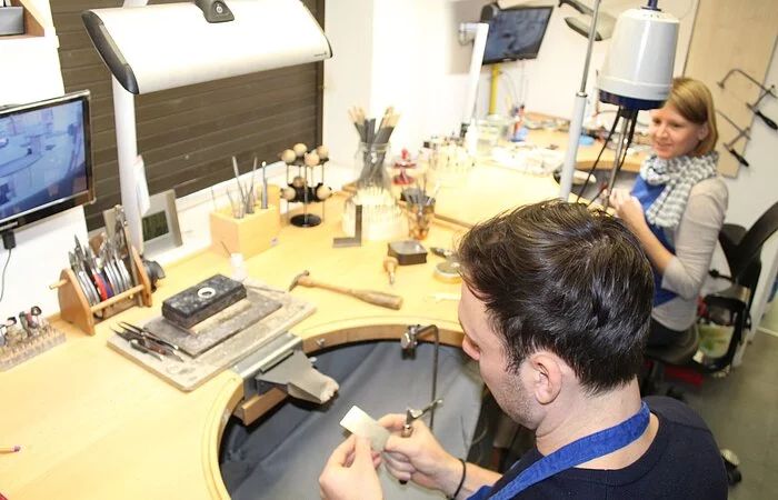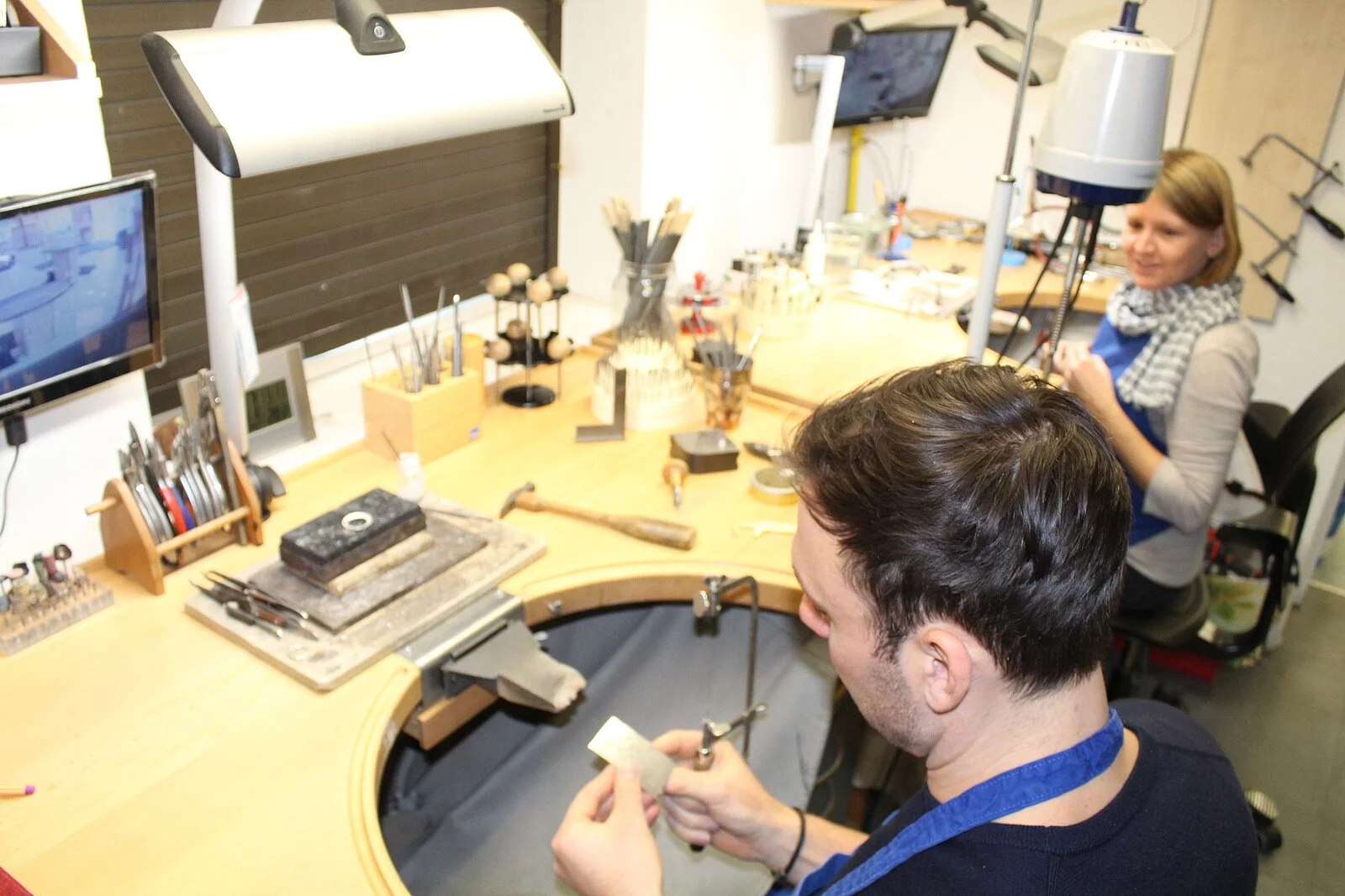Mit traditionellen sowie innovativen Goldschmiede-Techniken fertigen heute sehr umfangreich erfahrene Goldschmiedemeister in gemeinsamer Gestaltung mit dem Kunden individuelle Schmuckstücke, Trau- und Verlobungsringe an.