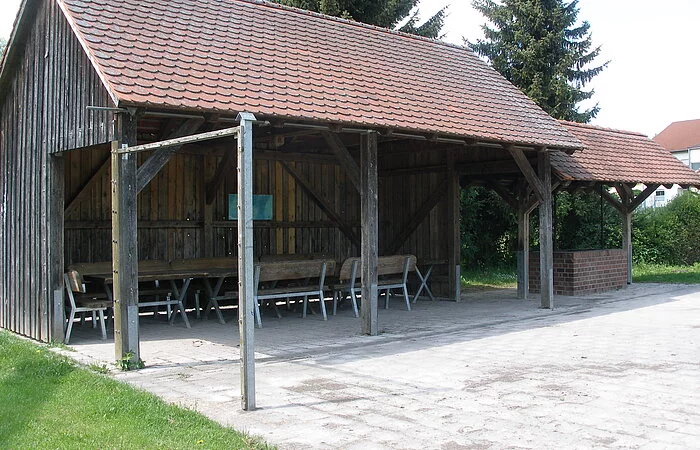 Grillplatz a. d. Schwarzach (Nähe Bogenschießplatz/Sportgelände), gemauerte, überdachte Grillstelle, sanitäre Anlagen, Unterstellhütte.