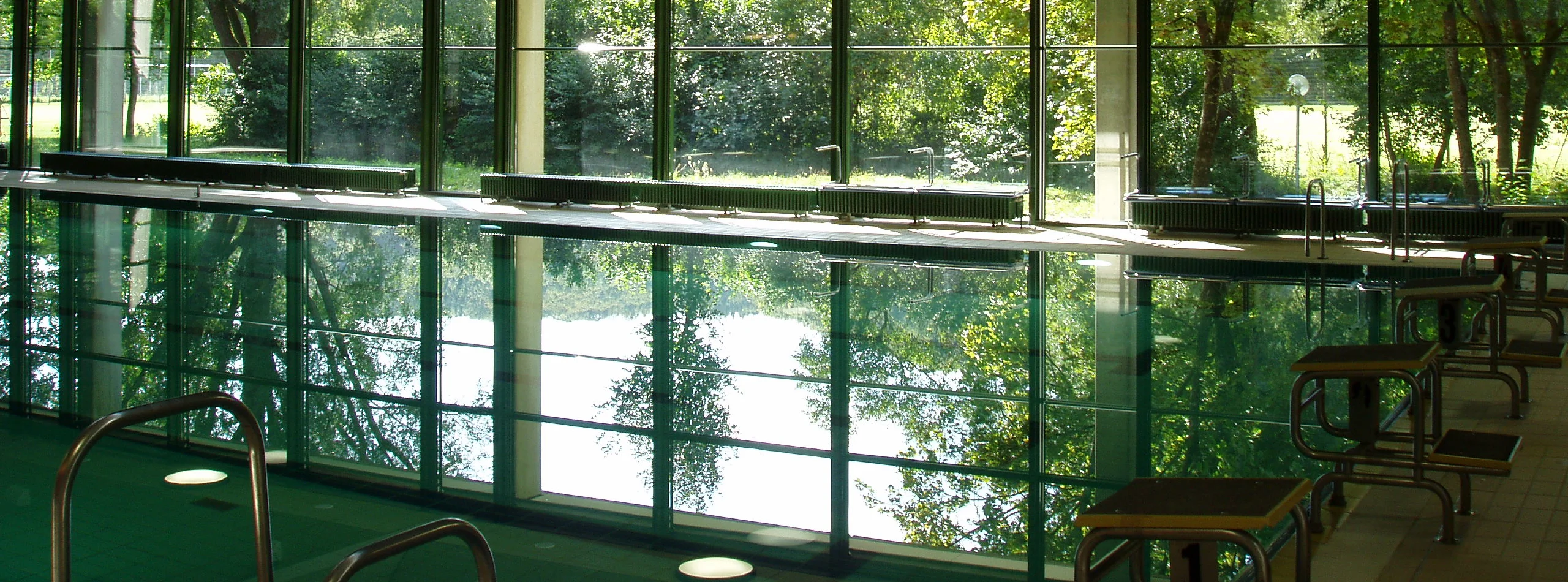 25 Meter Becken mit 5 Bahnen (halbseitig Hubboden).