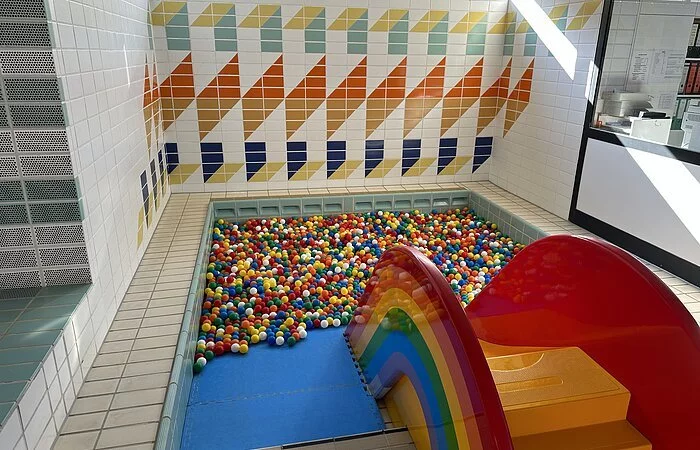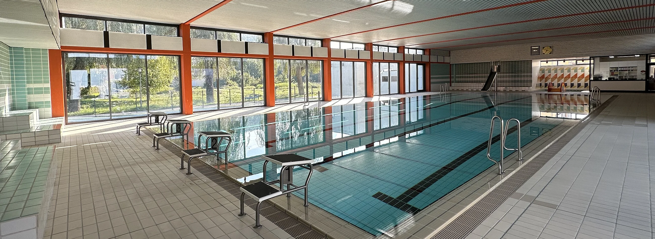 Es bietet ein Schwimmerbecken mit angrenzendem Nichtschwimmerbereich.
