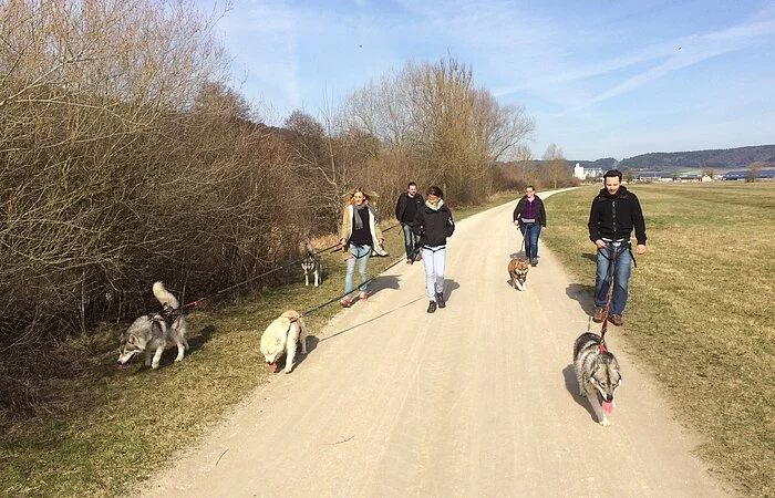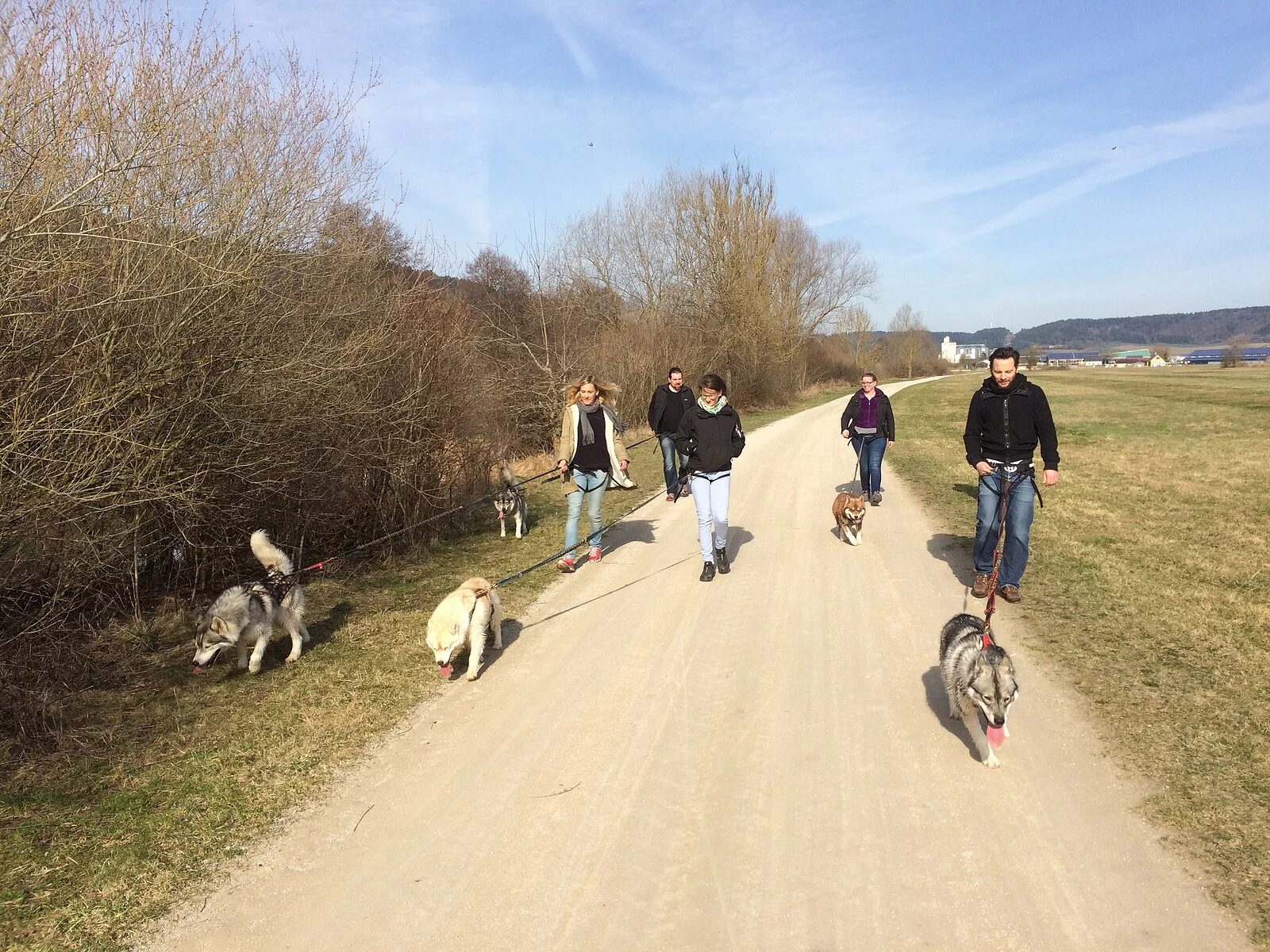 - Wanderung mit Husky durch Berg und Tal (1 Hund pro Erwachsenen, Kinder führen gemeinsam mit einem Erwachsenen einen Husky)