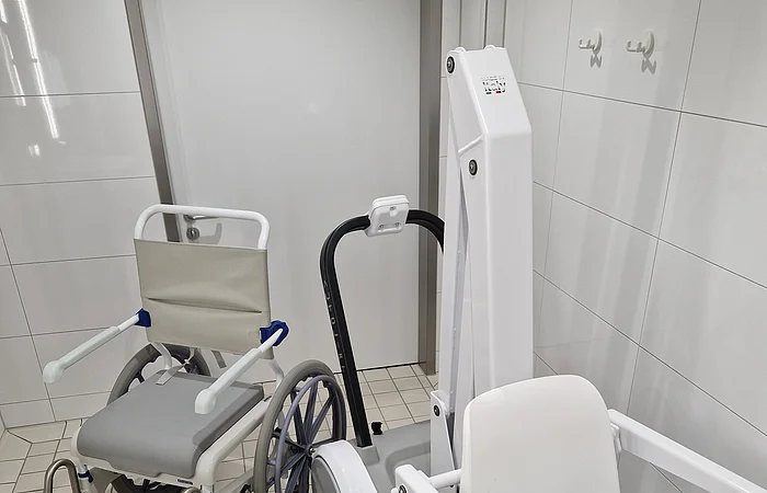 Der Zugang zum Jurabad Monheim ist barrierefrei. Der Einstieg in das 25 m Sportbecken ist mit Hilfe eines speziellen Pool Lifts mit Unterstützung durch das Bäderteam möglich.
