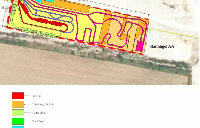 - „Starthügel" (AB). Dieser muss extra aufgeschüttet werden. Dadurch wird nicht „gegen die Sonne" gefahren.