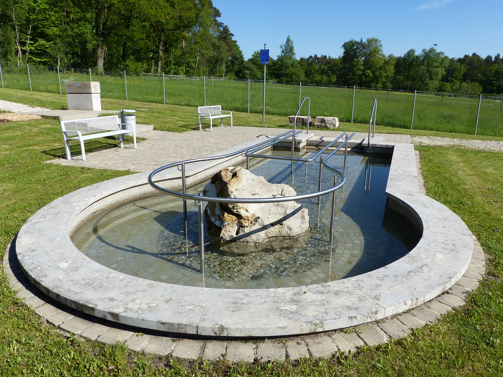 Die Kneipp-Gesundheitsanlage besteht aus einem Tret-Becken, einem Barfuß-Pfad und einem Becken für Arm-Bäder.