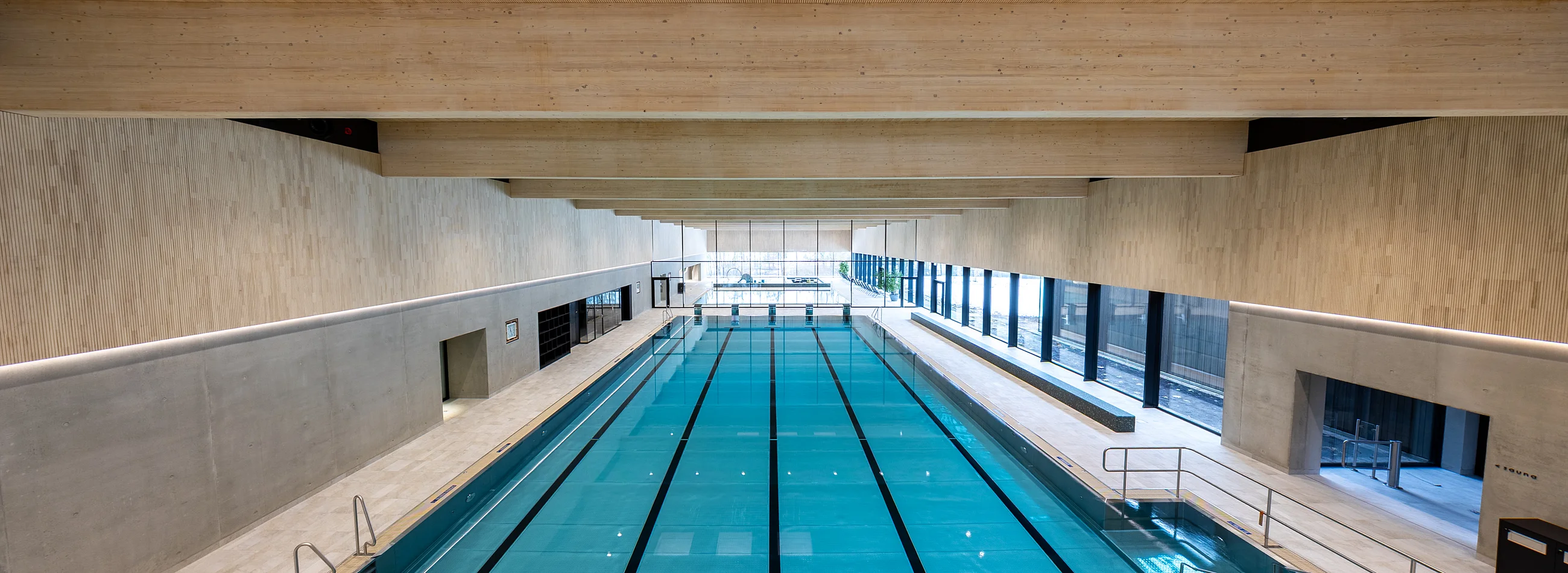 Das Hallenbad ist mit einer zentral positionierten Gastronomie ausgestattet, welche Foyer, Hallenbad und Sauna bedient.