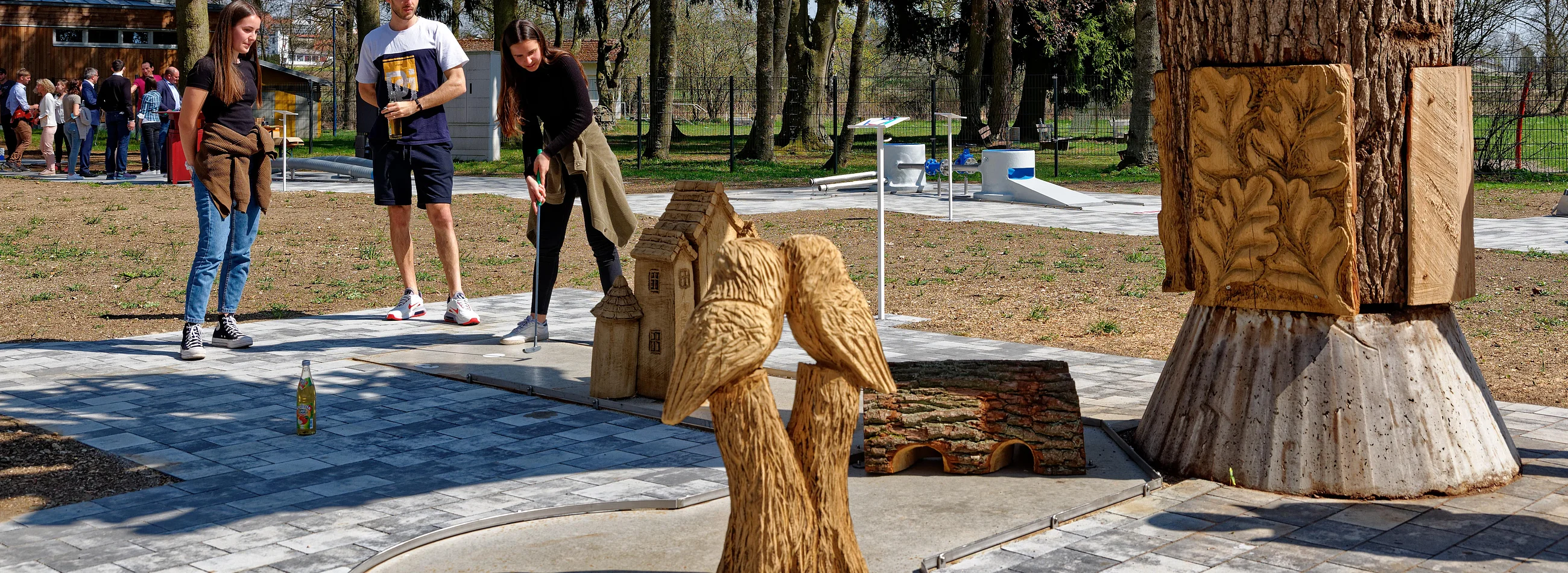 Außerhalb der Öffnungszeiten können Minigolfschläger am Kiosk ausgeliehen werden.