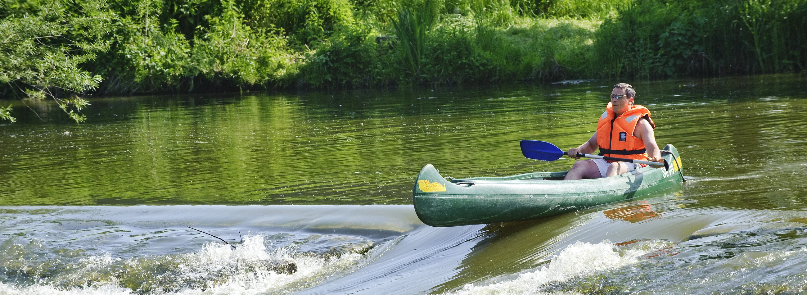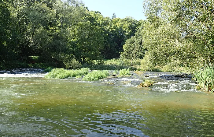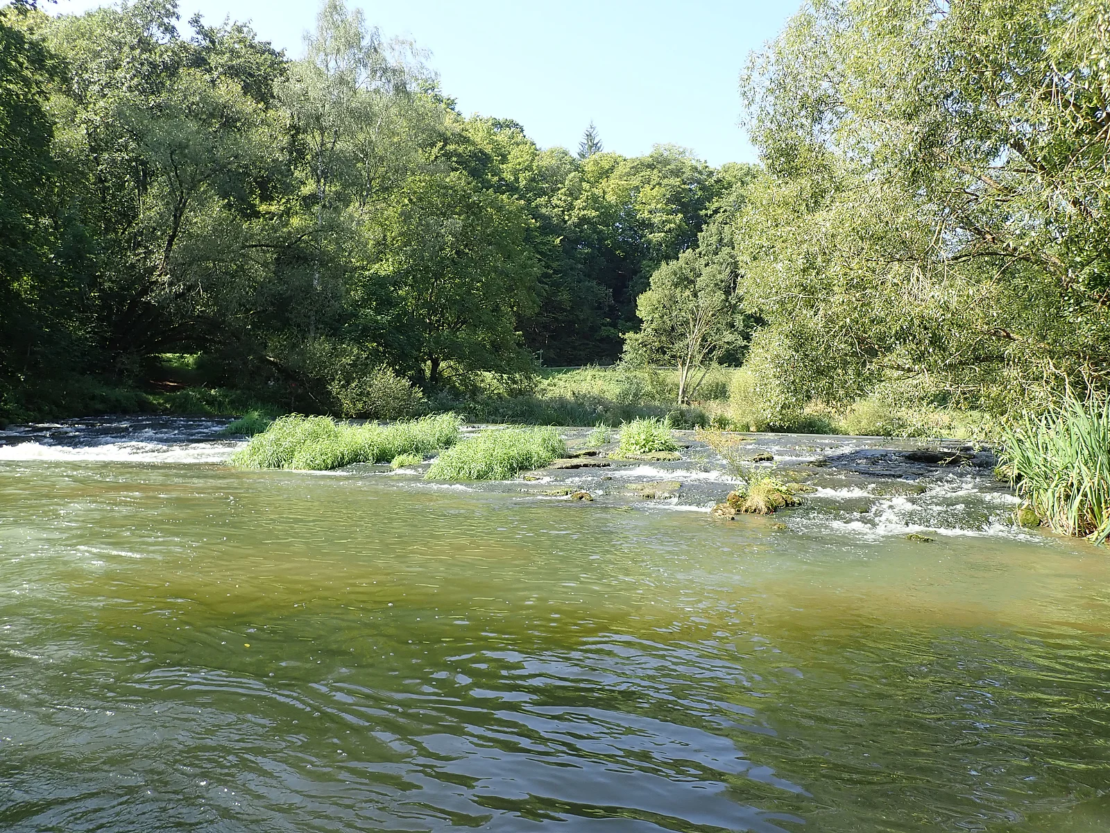 Natursteinwehr Hagenacker mit Bootsrutsche