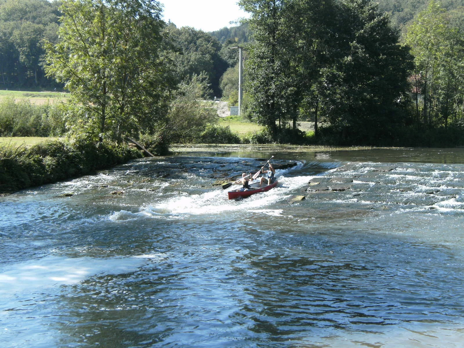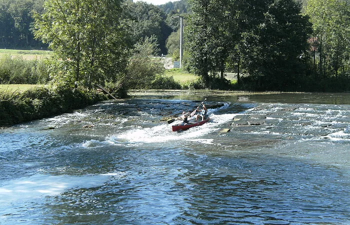 Natursteinwehr Hammermühle mit Bootsrutsche