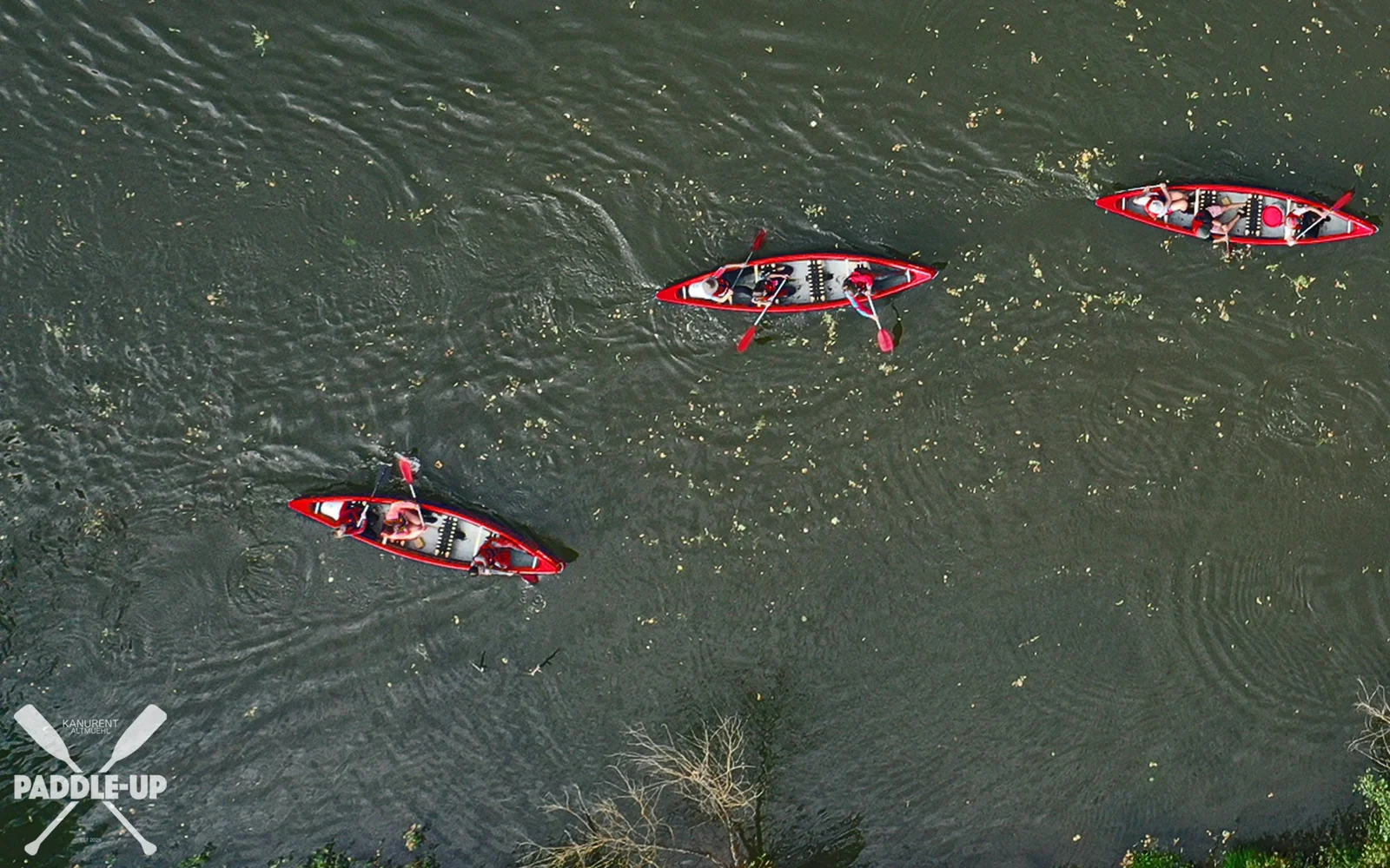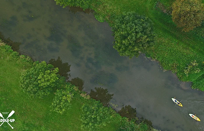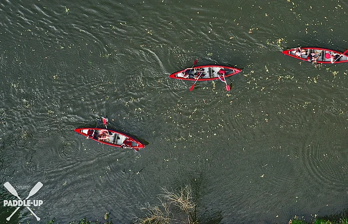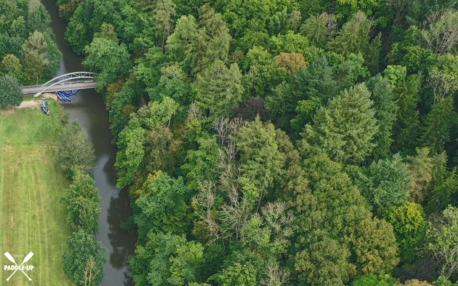 Kanufahrer in Altmühl mit Logo Paddle-Up in BildmitteFamilie in einem Kanu auf einem Streckenabschnitt der Altmühl, bei dem Bäume aus dem Wasser ragen.Kanufahrer auf der Altmühl aus der Vogelperspektive. Links im BildRote Kanus oder Kajaks aus der Vogelperspektive auf der Altmühl.Luftaufnahme eines Flusses mit grünem Ufer und einem kahlen Baum im Wasser. Logo mit gekreuzten Paddeln links unten.Bootswandern auf der Altmühl. Zwei Boote mit mehreren Personen. Der Fluss ist von grüner Natur umgeben, Bäume ragen aus und ins Wasser.Kanufahrer im Wasser mit stärkerer Strömung.Luftbildaufnahme Wald und Altmühl mit Brücke. Einstiegsstelle von Kanus und in die Altmühl.