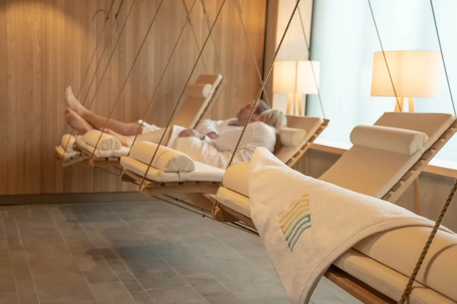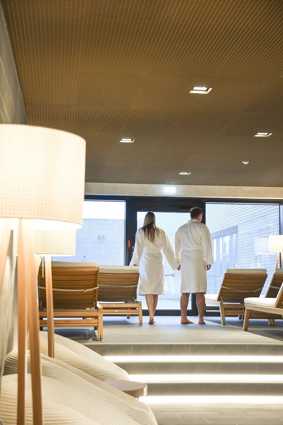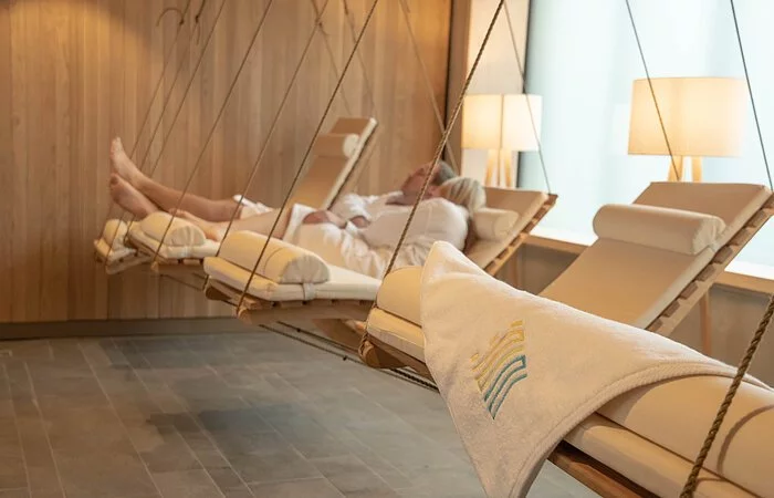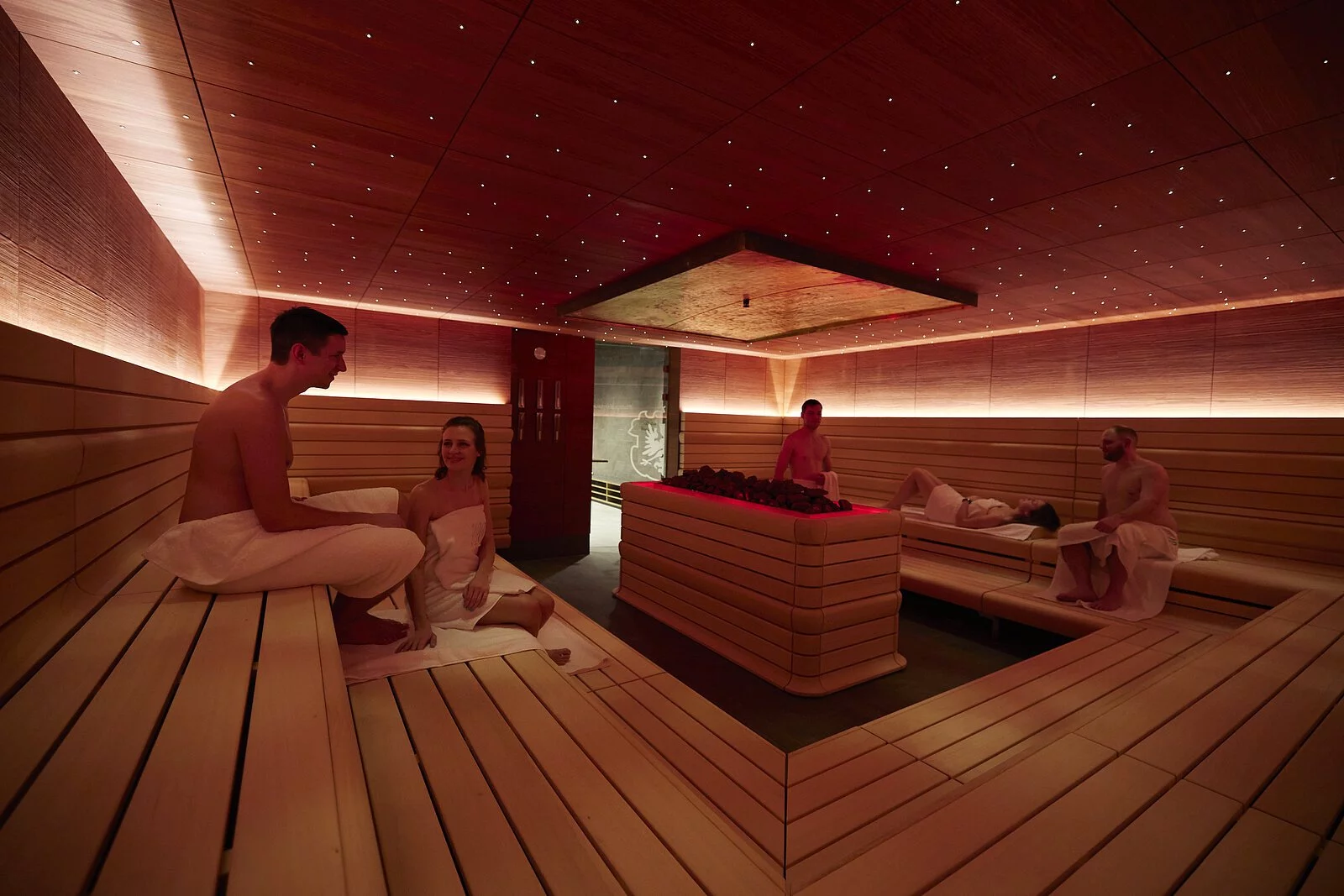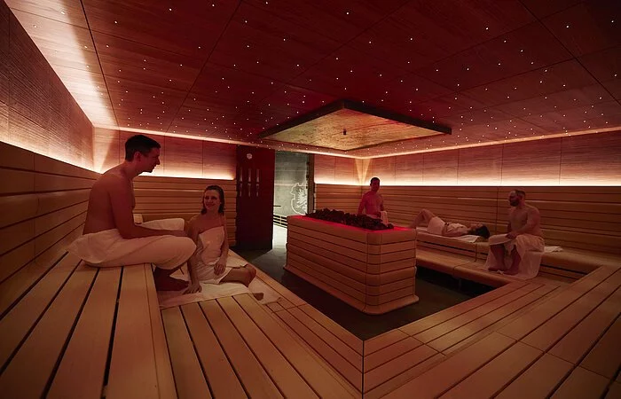 Ein echtes Schmuckstück ist der neue, elegante und überaus großzügige Wellnessbereich auf dem Oberdeck des Schlossbads. Die klassisch finnische Pfalzgrafensauna wird für kreative Aufgusszeremonien genutzt, ebenso wie die „historische“ Wolfsteinsauna aus Keloholz auf dem „Außendeck“ mit Aussicht aufs Freibad und einzigartigem Klima. Einen wunderschönen Panoramablick auf den Schlossweiher genießt man von der kleinen, aber feinen Schlossweihersauna. Eine Salzsauna, ebenfalls im Außenbereich, wirkt wohltuend auf die Atemwege. Sanfte, gut verträgliche Hitze versprechen die Kräutersauna und das Dampfbad im Innenbereich. Eine Neumarkter Besonderheit sind auch die kreativen Aufgusszeremonien und „Banjas“, für die der Saunameister ausschließlich hundertprozentige Naturprodukte verwendet. Nicht weniger spektakulär sind auch der große Infinity-Pool auf dem Oberdeck und die großzügig angelegten Ruhebereiche, unter anderem mit einer Kamin-Lounge, wo man bei flackerndem Feuer in luxuriösen Hängeliegen relaxen kann. Als weiteres Highlight gilt die exklusive Saunagastronomie mit regionalen Spezialitäten vom Panino „Weideglück“ bis zu Superfood-Bowls und Champagner. Genuss hat eben viele schöne Seiten im neuen Schlossbad