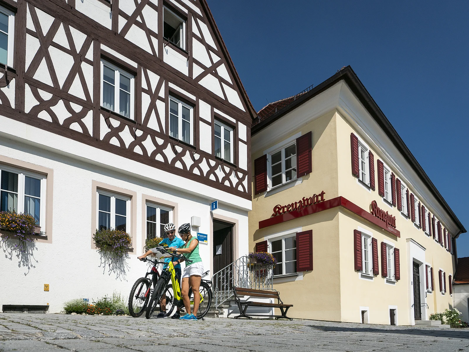 Außerdem befinden sich im Vorraum zwei große Prospektständer mit kostenlosem Infomaterial zu den Themen Radfahren, Wandern und Freizeit in den Urlaubsregionen Monheimer Alb, Ferienland DONAURIES, Geopark Ries und Naturpark Altmühltal.