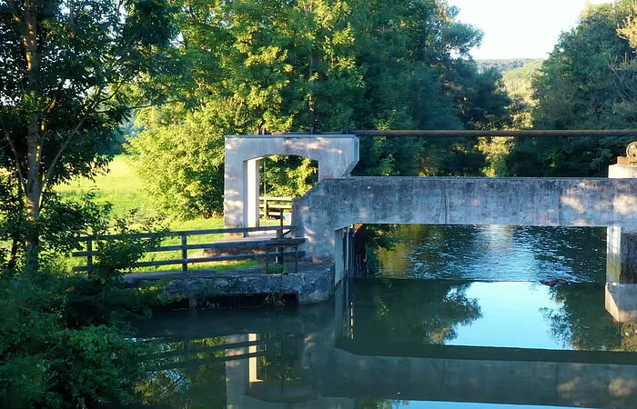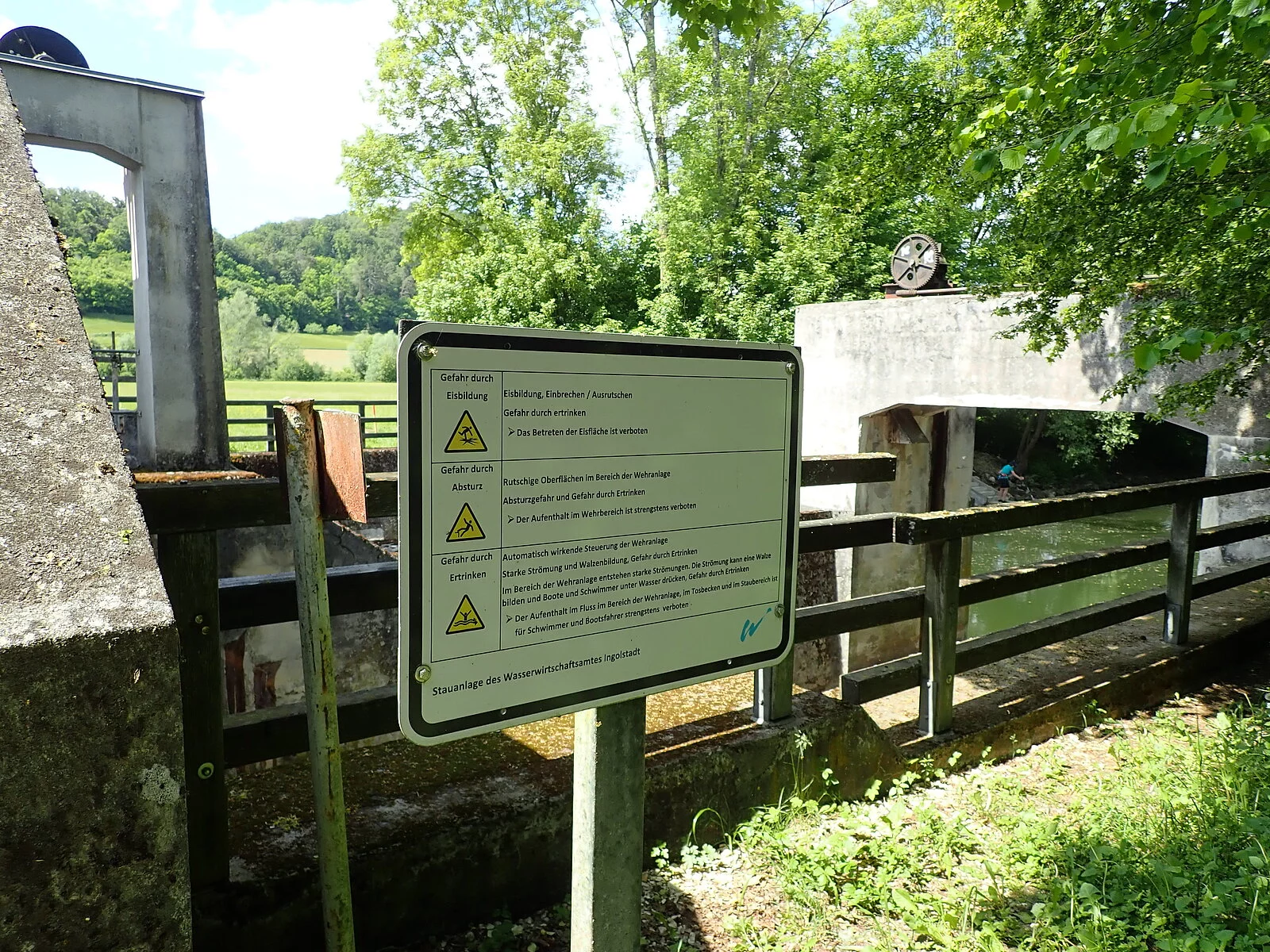 Das Wehr bei der Bubenrother Mühle am Flusskilometer 99,5 (zwischen Dollnstein und Breitenfurt) muss links umgangen werden.