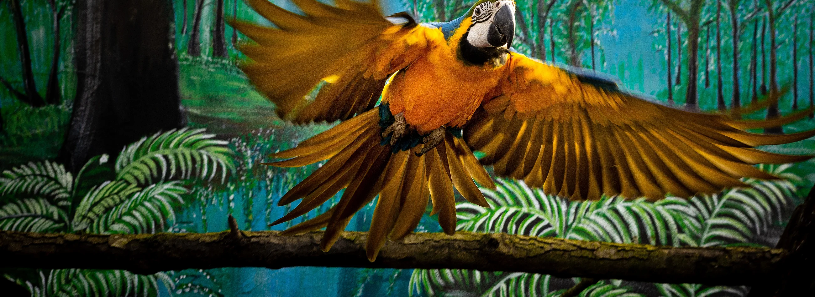 Die weitestgehend naturnah gestaltete Anlage beherbergt über 50 Arten aus 5 Kontinenten auf rund 1800 Quadratmetern.