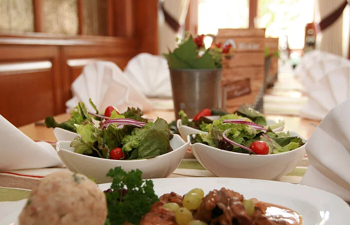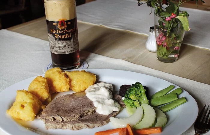 Ob frischer Fisch, Wild oder Gemüse - das jahreszeitiche Angebot der heimischen Natur bestimmt den Speiseplan des Gasthofes und verbindet deftig bayerische Küche mit ernährungsbewußten Rezepturen und hat sich der regionalen "SlowFood"-Küche verschrien.